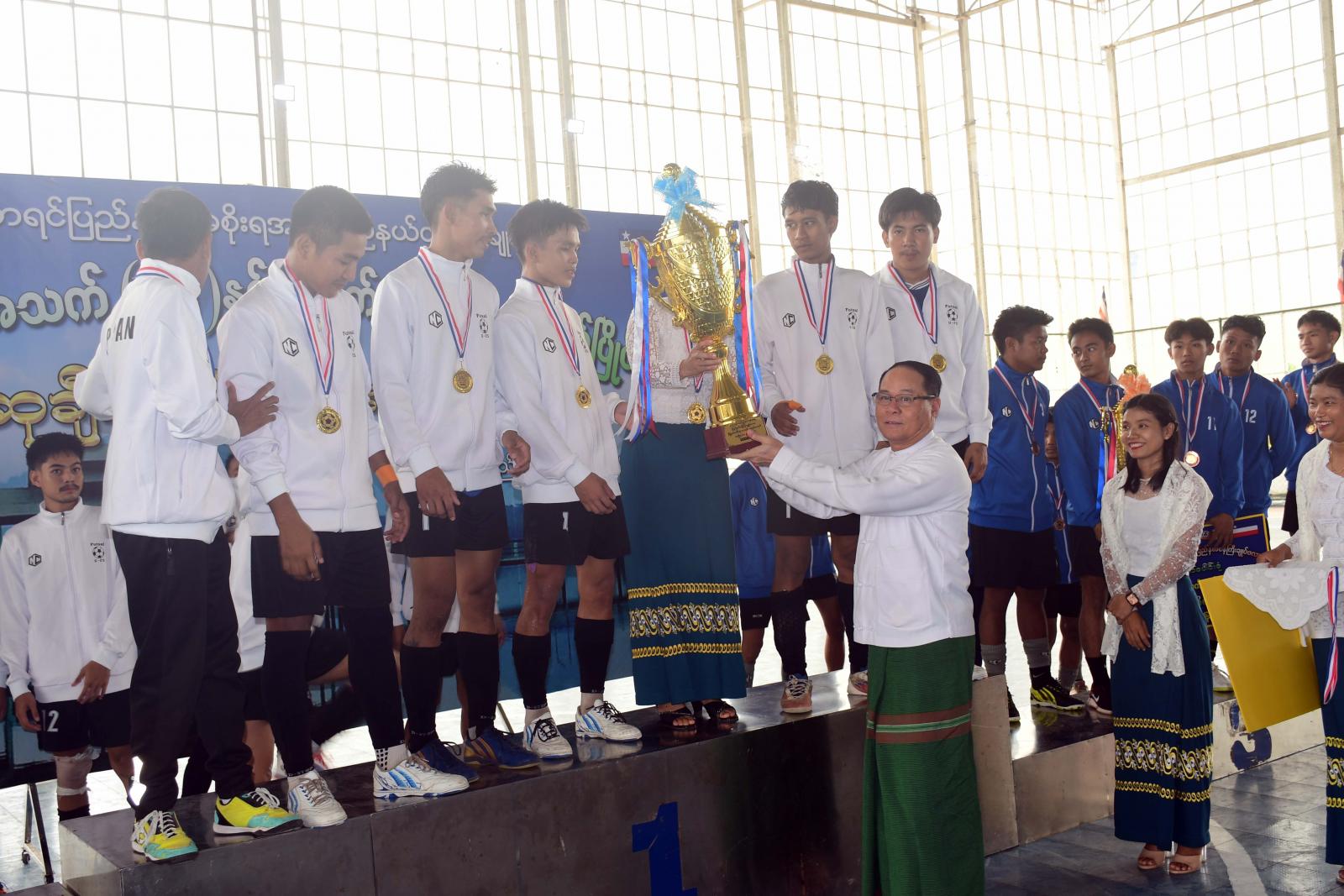ဗိုလ်လုပွဲစဉ်အပြီးတွင် ဆုချီးမြှင့်ပွဲအခမ်းအနားကိုဆက်လက်ကျင်းပရာ ပြည်နယ်အစိုးရအဖွဲ့ဝင်များနှင့် ပြည်နယ်တရားလွှတ်တော်တရားသူကြီးချုပ်တို့က ပွဲစဉ်တစ်လျှောက်ဂိုးသွင်းအများဆုံး အားကစားသမားဆု၊ ဂိုးသမား အကောင်းဆုံးဆု၊ အကောင်းဆုံးအားကစားသမားဆု ရရှိကြသော အားကစားသမားများနှင့် တတိယဆုရရှိသော သံတောင်ကြီးမြို့နယ်အသင်း၊ ဒုတိယဆုရရှိသော ဖာပွန်မြို့နယ်အသင်းတို့အား တစ်ဦးချင်းလည်ဆွဲဆု၊ ငွေသားဆုနှင့် ဆုဖလားတို့ကို ပေးအပ်ချီးမြှင့် ခဲ့ကြပြီး ပြည်နယ်ဝန်ကြီးချုပ်က အနိုင်ရဗိုလ်စွဲသွားသော ဘားအံမြို့နယ်အသင်းအား တစ်ဦးချင်း လည်ဆွဲဆု၊ ငွေသားဆု (၁၀ )သိန်းကျပ်တို့ကို ပေးအပ်ချီးမြှင့်ခဲ့ကြကာ ဆုရရှိကြသော အားကစား သမားများနှင့်အတူ စုပေါင်းမှတ်တမ်းဓာတ်ပုံများရိုက်ကူးခဲ့ကြသည်။