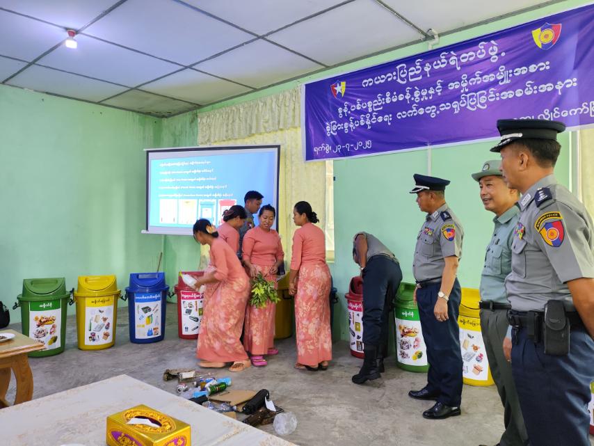 ကယားပြည်နယ်၊ ပတ်ဝန်းကျင်ထိန်းသိမ်းရေးဦးစီးဌာနနှင့် ပြည်နယ်ရဲတပ်ဖွဲ့မှူးရုံးတို့ပူးပေါင်း၍ “စွန့်ပစ်ပစ္စည်းစီမံခန့်ခွဲမှုနှင့် အမှိုက်အမျိုးအစား ခွဲခြားစွန့်ပစ်နိုင်ရေး လက်တွေ့သရုပ်ပြခြင်း” အခမ်းအနားကို ဇူလိုင် ၂၃ ရက်နေ့နံနက်က လွိုင်ကော်မြို့မရဲစခန်း အစည်းအဝေးခန်းမ၌ ကျင်းပသည်။