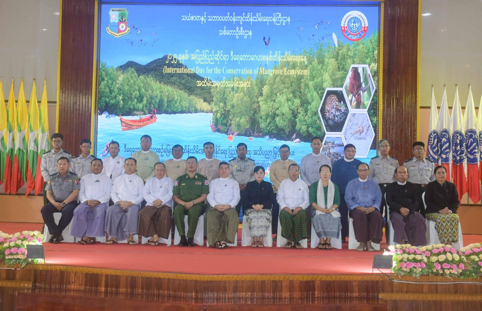 အခမ်းအနားတွင် ရခိုင်ပြည်နယ်ဝန်ကြီးချုပ် ဦးထိန်လင်းက ကမ်းရိုးတန်းဒေသများတွင် ဒီရေတောများ ရေရှည်တည်တံ့ဖွံ့ဖြိုးစေခြင်း၊ သက်ရှိတို့အတွက် ရိက္ခာများထုတ်လုပ်ပေးခြင်းနှင့် ရာသီဥတုပြောင်းလဲမှု လျှော့ချပေးခြင်းတို့ကို ကမ္ဘာသူ၊ ကမ္ဘာသားများကသတိပြုစေပြီး အလေးထားပိုမိုပူးပေါင်းပါဝင် လာစေရေးအတွက် ၂၀၁၅ ခုနှစ်တွင် ကမ္ဘာ့ကုလသမဂ္ဂပညာရေး၊ သိပ္ပံနှင့်ယဉ်ကျေးမှုအဖွဲ့(United Nations Education, Science and Culture Organization- UNESCO)က အပြည်ပြည်ဆိုင်ရာ ဒီရေတောဂေဟစနစ် ထိန်းသိမ်းရေးနေ့ (International Day for the Conservation of the Mangrove Ecosystem) ကို နှစ်စဉ်ဇူလိုင်လ (၂၅)ရက်နေ့တွင် ကျင်းပရန် သတ်မှတ်ခဲ့ကြောင်း၊ ဒီရေတောများ ပျက်စီးမှုနှင့်အတူဆက်စပ်နေသော ဇီဝမျိုးစုံ မျိုးကွဲများ၊ ငါး၊ ပုစွန်၊ ကဏန်းများနှင့် ၎င်းတို့၏ နေရင်းဒေသများ ပြုန်းတီးလာမှုများကို စနစ်တကျထိန်းသိမ်းတည်ထောင်ရန် လိုအပ်ကြေင်း၊ ထို့ကြောင့် ပြည်သူလူထု ပိုမိုနိုးကြားသိမြင်လာစေရန်အတွက် အပြည်ပြည်ဆိုင်ရာ ဒီရေတော ဂေဟစနစ် ထိန်းသိမ်းရေးနေ့ကို (Raise Awareness of the Importance of Mangrove Ecosystem for Sustainable Conservation, Management and Uses) ဒီရေတောများ သားစဉ်မြေးဆက် ထိန်းသိမ်း အသုံးပြုနိုင်ရေး ပြည်သူလူထုအသိပညာ မြှင့်တင်ပေး ဟူသောဆောင်ပုဒ်ဖြင့် နှစ်စဉ်ကျင်းပခဲ့ကြောင်း၊ ယနေ့ခေတ် ရာသီဥတုပြောင်းလဲဖောက်ပြန်မှုကို တိုက်ဖျက်ရာတွင် ဒီရေတောများသည် သဘာဝဘေး အန္တရာယ်များမှ ကာကွယ်ပေးနိုင်သည့် တံတိုင်းကြီးများဖြစ်သကဲ့သို့ ကာဗွန်စုပ်ယူ သိုလှောင်ပေးထား သော ကာဗွန်သိုလှောင်ကန်ကြီးများလည်းဖြစ်ကြောင်း၊ မြန်မာနိုင်ငံ၏ရှည်လျားလှသော ကမ်းရိုးတန်း တစ်လျှောက်တွင် ဒီရေတောများ၊ သဲသောင်ခုံတောများ၊ ပင်လယ်မြက်ခင်းများ၊ သန္တာကျောက်တန်းများ စသည့် သယံဇာတများ ပေါကြွယ်ဝသော ပင်လယ်ကမ်းရိုးတန်းနှင့် အဏ္ဏဝါဂေဟစနစ်များသည် နိုင်ငံ့စားနပ်ရိက္ခာဖူလုံရေးနှင့် ရေရှည်ဖွံ့ဖြိုးတိုတက်ရေးအပေါ် အဓိကအခန်းကဏ္ဍမှ ပံ့ပိုးပေးလျက်ရှိကြောင်း၊ ဒီရေတောများစိုက်ပျိုးထိန်းသိမ်းခြင်းသည် သဘာဝဘေးအန္တရာယ်ကာကွယ်ရေး၊ ပြည်သူ လူထုကြံ့ကြံ့ခံတုံ့ပြန်နိုင်ရေးနှင့် ပြန်လည်ထူထောင်ရေး အစီအမံများတွင် အဓိကအခန်းကဏ္ဍမှ ပါဝင်လျက်ရှိသည့်အတွက် လူထုအခြေပြု ဒီရေတောများ စိုက်ပျိုးခြင်း၊ ဒေသခံပြည်သူလူထုအစုအဖွဲ့ပိုင် သစ်တောများ တည်ထောင်ခွင့်ပြုခြင်း၊ အစိမ်းရောင်တံတိုင်းများကို လူထုပူးပေါင်းပါဝင်မှုဖြင့် တည်ထောင်ခြင်း၊ ဂေဟစနစ်အခြေပြု ဒီရေတောများ တည်ထောင်ခြင်းနှင့် သဘာဝအခြေခံ ဖြေရှင်း နည်းလမ်းများဖြင့် ဒီရေတောထူထောင်ခြင်းစသည့် နည်းလမ်းများဖြင့် ဒီရေတောဂေဟစနစ်များကို ပြန်လည် ထူထောင်နိုင်ခဲ့ကြောင်း၊ ထို့ကြောင့် ဒီရေတောများ ထိန်းသိမ်းခြင်း၊ ဒီရေ