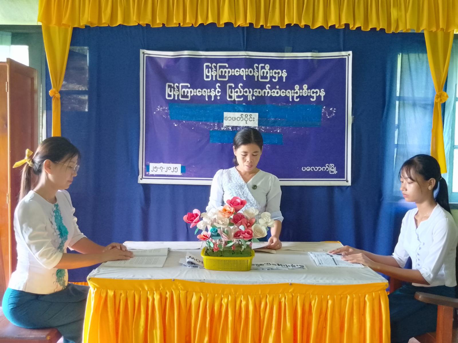 စာဖတ်ဝိုင်းတွင် ပြန်ကြားရေးနှင့်ပြည်သူ့ဆက်ဆံရေးဦးစီးဌာန၊ မြို့ဦးစီးမှူးက ရုံးလုပ်ငန်းများကို နည်းစနစ်မှန်ကန်စွာ ဆောင်ရွက်နိုင်ရေး ရုံးလုပ်ငန်းလက်စွဲပါ စာအုပ်အား လေ့လာသိရှိထားကြရန်လိုအပ်ကြောင်း၊ ရုံးလုပ်ငန်းများ ဆောင်ရွက်ရာတွင်လည်း သတ်မှတ်ထားသည့် စည်းကမ်းချက်များအတိုင်း လိုက်နာဆောင်ရွက်ရန် လိုအပ်ကြောင်း ဆွေးနွေးသည်။ ထို့နောက် စာကြည့်တိုက်လက်ထောက်-၃ မှ ရုံးစာရေးသားနည်းအားလည်းကောင်း၊ အငယ်တန်းစာရေးမှ လုပ်ငန်းမှတ်တမ်းရေးသားခြင်း စသည်တို့ကို အသီးသီး ဆွေးနွေးမေးမြန်းကြရာ မြို့ဦးစီးမှူးက ရှင်းလင်းဖြေကြားခဲ့ကြောင်း သိရသည်။