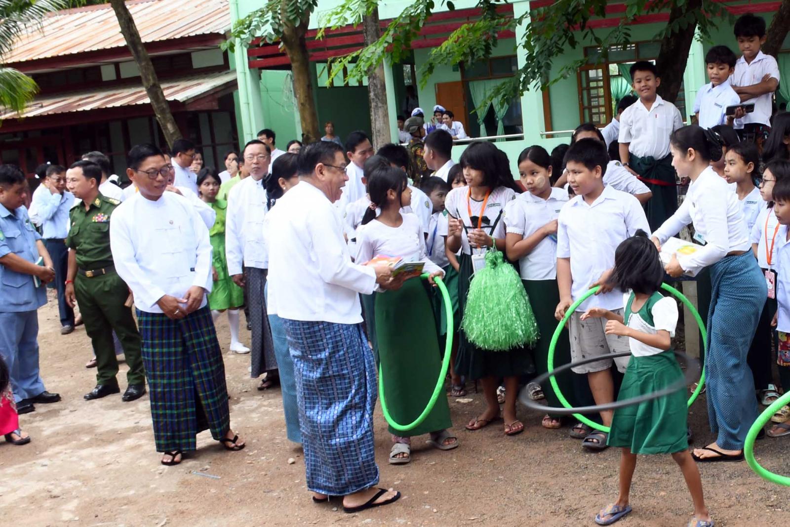 ဆက်လက်၍ တိုင်းဒေသကြီးဝန်ကြီးချုပ်နှင့်တာဝန်ရှိသူများက စာကြည့်တိုက်များ ဖွံ့ဖြိုးတိုးတက်ရေးနှင့်စာဖတ်ရှိန်မြှင့်တင်ရေးပွဲတော်အတွင်း ခင်းကျင်းပြသထားသည့် စာကြည့်တိုက်များ ဖွံ့ဖြိုးတိုးတက်ရေးနှင့်စာဖတ်ရှိန် မြှင့်တင်ရေးဆောင်ရွက်မှု မှတ်တမ်းဓာတ်ပုံများ၊ အထက်တန်းအဆင့် ကျပန်းစကားပြောပြိုင်ပွဲ၊ အထက်တန်းအဆင့် စာစီ စာကုံးပြိုင်ပွဲ၊အလယ်တန်း အဆင့်စာစီစာကုံး ပြိုင်ပွဲများ၊ အလယ်တန်းအဆင့်စာဖတ်စွမ်းရည်ပြိုင်ပွဲနှင့် မူလတန်းအဆင့်ပုံပြင်ပြောပြိုင်ပွဲများ၊ ပျော်ပွဲ ရွှင်ပွဲအနေဖြင့်ဆေးရောင်ခြယ်ပြိုင်ပွဲ၊ သတ်ပုံအမှန်ရွေးပြိုင်ပွဲ၊ စကားပုံဆက်ပြိုင်ပွဲ၊ အထပ်တန်းအဆင့် ဉာဏ်စမ်းပြိုင်ပွဲ၊ အလယ်တန်းအဆင့် ဉာဏ်စမ်းပြိုင်ပွဲ၊အရုပ်ဆက်ပြိုင်ပွဲ၊ အားကစားအနေဖြင့် ခါးကွင်း လှည့်ကစားနည်းများကို လှည့်လည်ကြည့်ရှုအားပေးပြီး တိုင်းဒေသကြီးဝန်ကြီးချုပ်က ပါဝင်ယှဉ်ပြိုင်သော ကျောင်းသား၊ ကျောင်းသူများအား ရင်းရင်းနှီးနှီးလိုက်လံ နှုတ်ဆက်ကာ ကျောင်းသုံး ဗလာစာအုပ်များပေးအပ်ကြသည်။
