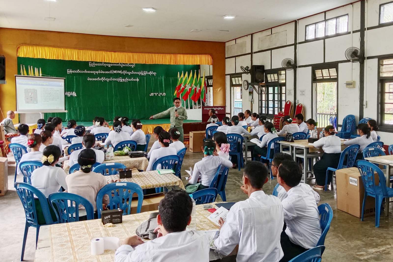 ဦးစွာ မဲရုံးအသီးသီးတွင် မဲရုံမှူးတာဝန်ထမ်းဆောင်ကြမည့်သူများအား ပြည်ထောင်စုရွေးကောက်ပွဲကော်မရှင်ညွှန်ကြားရေးမှူး ဦးမြတ်ထွန်းဦးနှင့် တနင်္သာရီတိုင်းဒေသကြီးရွေးကောက်ပွဲကော်မရှင်အဖွဲ့ခွဲ ဒုတိယညွှန်ကြားရေးမှူး ဦးထိန်လင်းဦးတို့က မဲပေးစက်ကိုင်တွယ်အသုံးပြုရခြင်းနှင့်စပ်လျဉ်း၍ Power Point ဖြင့် ရှင်းလင်းပြောကြားခဲ့သည်။