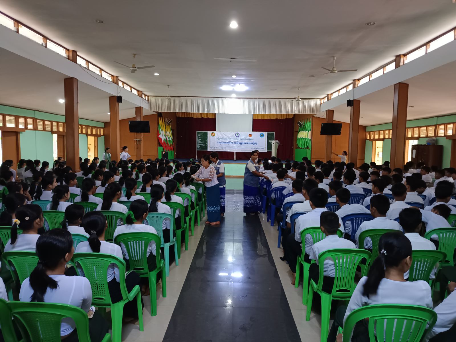 ထို့နောက် မြို့နယ်ပြန်ကြားရေးနှင့်ပြည်သူ့ဆက်ဆံရေးဦးစီးဌာနမှ သဘာဝဘေးအန္တရာယ်ဆိုင်ရာ အသိပညာပေး နံရံကပ်ဗီနိုင်းပိုစတာပြသခြင်းနှင့် လက်ကမ်းစာစောင်များ ဖြန့်ဝေပေးခဲ့ကြကြောင်း သိရသည်။
