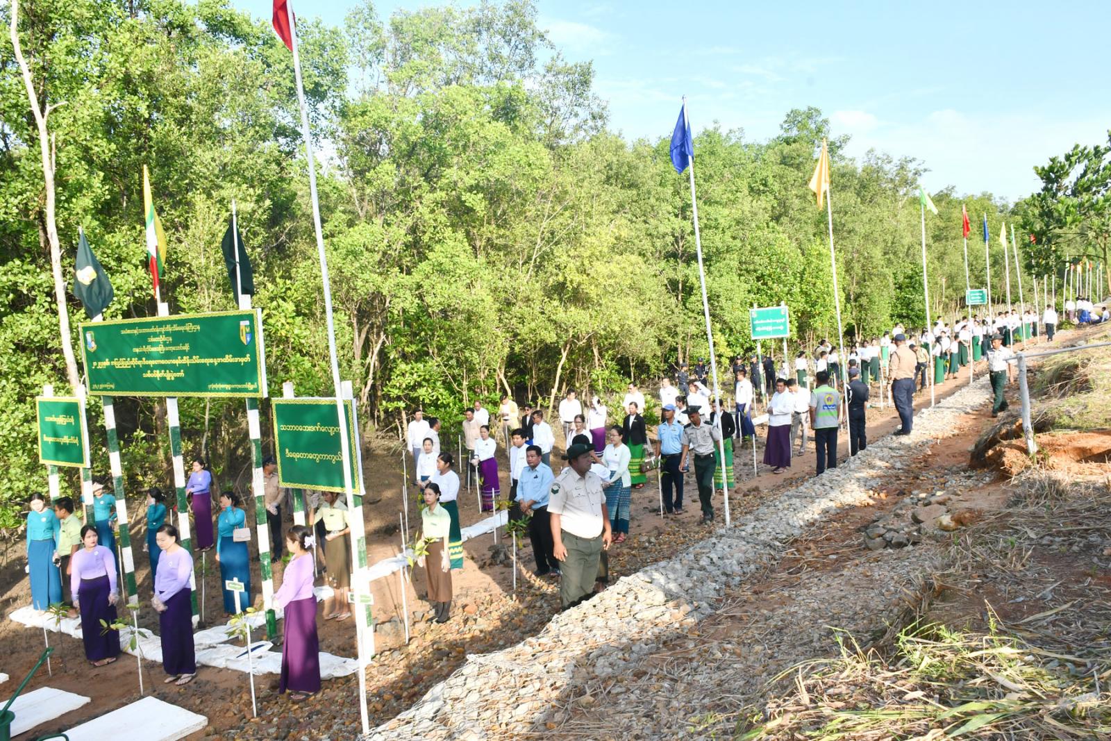 ရှေးဦးစွာ ဒီရေတော သစ်ပင်စိုက်ပျိုးပွဲတော်အား ပုလုံးတုံတုံးတံတားအနီးတွင် စတင်ကျင်းပရာ စစ်ဗျူဟာအဖွဲ့အခြေချ(ကော့သောင်း)မှ စစ်ဗျူဟာမှူး၊ခရိုင်စီမံအုပ်ချုပ်ရေးအဖွဲ့ဥက္ကဋ္ဌနှင့်အဖွဲ့ဝင်များက တက်ရောက်လာကြသည့် ဌာနအဖွဲ့အစည်းအသီးသီးအား စိုက်ပျိုးမည့်ပျိုးပင်များပေးအပ်ခဲ့ပြီး တက်ရောက်လာကြသူများက ဒီရေတောသစ်မျိုးဖြစ်သည့် ဗြူးခြေထောက်ပင်(၁၀၀၀)ပင်အား အတူတကွ တပျော်တပါး စုပေါင်းစိုက်ပျိုးခဲ့ကြသည်။ အဆိုပါ ဒီရေတောသစ်ပင်စိုက်ပျိုးနေမှုအားစစ်ဗျူဟာအဖွဲ့ အခြေချ(ကော့သောင်း)မှ စစ်ဗျူဟာမှူး၊ ခရိုင်နှင့် မြို့နယ်စီမံအုပ်ချုပ်ရေးအဖွဲ့ဥက္ကဋ္ဌများနှင့်အဖွဲ့ဝင်များ၊ တာဝန်ရှိသူများက ကြည့်ရှုအား ပေးခဲ့ကြသည်။