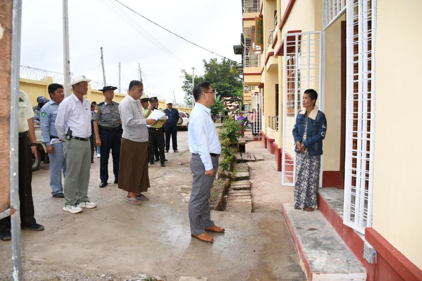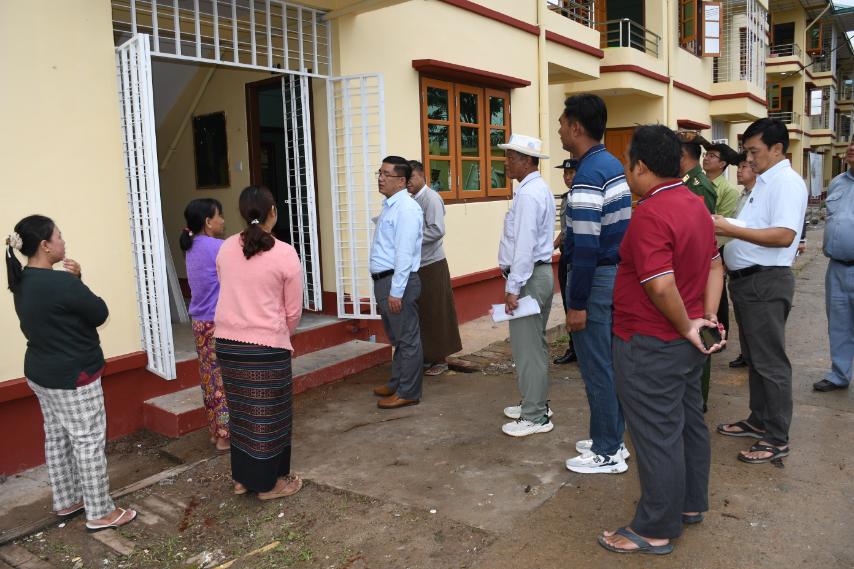 ထို့နောက် နောင်ယား(က)ရပ်ကွက်ရှိ စုပေါင်းဝန်ထမ်းအိမ်ရာသို့ ရောက်ရှိပြီး ပြုပြင်ပြီးစီး သည့် တိုက်အမှတ် ၂၀၊ ၂၁ နှင့် ၂၂ တို့တွင် ဝန်ထမ်းများအား ပြန်လည်နေရာချထားပေးမှု အခြေအနေများအား လှည့်လည်ကြည့်ရှုစစ်ဆေးပြီး နေထိုင်ကြသည့် ဝန်ထမ်းများနှင့် မိသားစုဝင်များအား ရင်းရင်းနှီးနှီးနှုတ်ဆက် အားပေးစကားပြောကြားခဲ့သည်။ ဆက်လက်၍ အဆိုပါဝန်ထမ်းအိမ်ရာဝင်းအတွင်း ဝန်ထမ်းများက မိမိတို့အိမ်ရာအလိုက် စုပေါင်းသန့်ရှင်းရေး ဆောင်ရွက်နေမှုအား လှည့်လည်ကြည့်ရှုပြီး ဝန်ထမ်းများ နေထိုင်မှုအဆင်ပြေစေရန် သောက်သုံးရေနှင့် လျှပ်စစ်မီး ပြတ်လပ်မှုမရှိစေရေး ဆောင်ရွက်ပေးရန်နှင့် အိမ်ရာဝင်းရှိ မြေလွတ်နေရာများတွင် သီးပင်စားပင်များ စိုက်ပျိုးကြရန် ဝန်ထမ်းများနှင့် တာဝန်ရှိသူများအား မှာကြားခဲ့ပြီး ရင်းရင်းနှီးနှီးနှုတ်ဆက် အားပေးစကားပြောကြားခဲ့ကြောင်း သိရသည်။