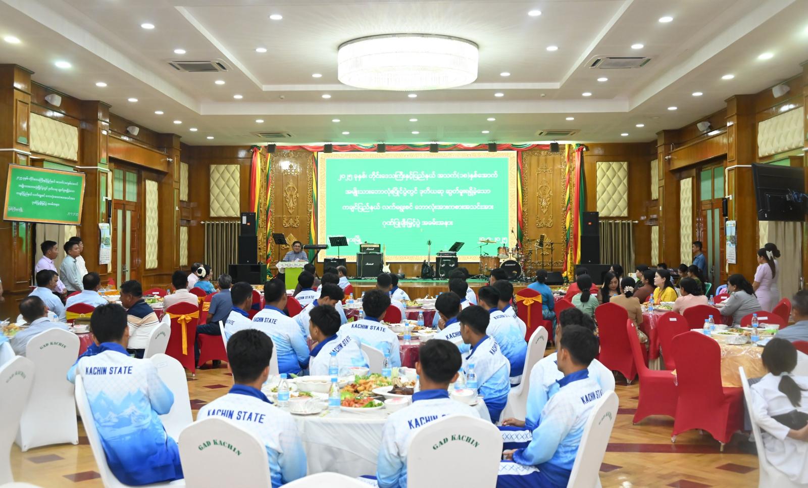 ၂၀၂၅ တိုင်းဒေသကြီးနှင့်ပြည်နယ် အသက်(၁၈)နှစ်အောက် အမျိုးသားဘောလုံးပြိုင်ပွဲတွင် ဒုတိယဆုရရှိခဲ့သည့်အပြင် ဂိုးသမားအကောင်းဆုံးဆုနှင့် အလယ်တန်းအကောင်းဆုံး ဆုများကိုရရှိခဲ့သော ကချင်ပြည်နယ်လက်ရွေးစင် အမျိုးသားဘောလုံးအသင်းအား ကချင်ပြည်နယ်အစိုးရအဖွဲ့က ဂုဏ်ပြုချီးမြှင့်ပွဲအခမ်းအနားကို ယမန်နေ့ညနေ ၆ နာရီက ပြည်နယ်အစိုးရအဖွဲ့ရုံး မေခခန်းမ၌ ဂုဏ်ပြုညစာဖြင့် ချီးမြှင့်ဂုဏ်ပြုခဲ့သည်။