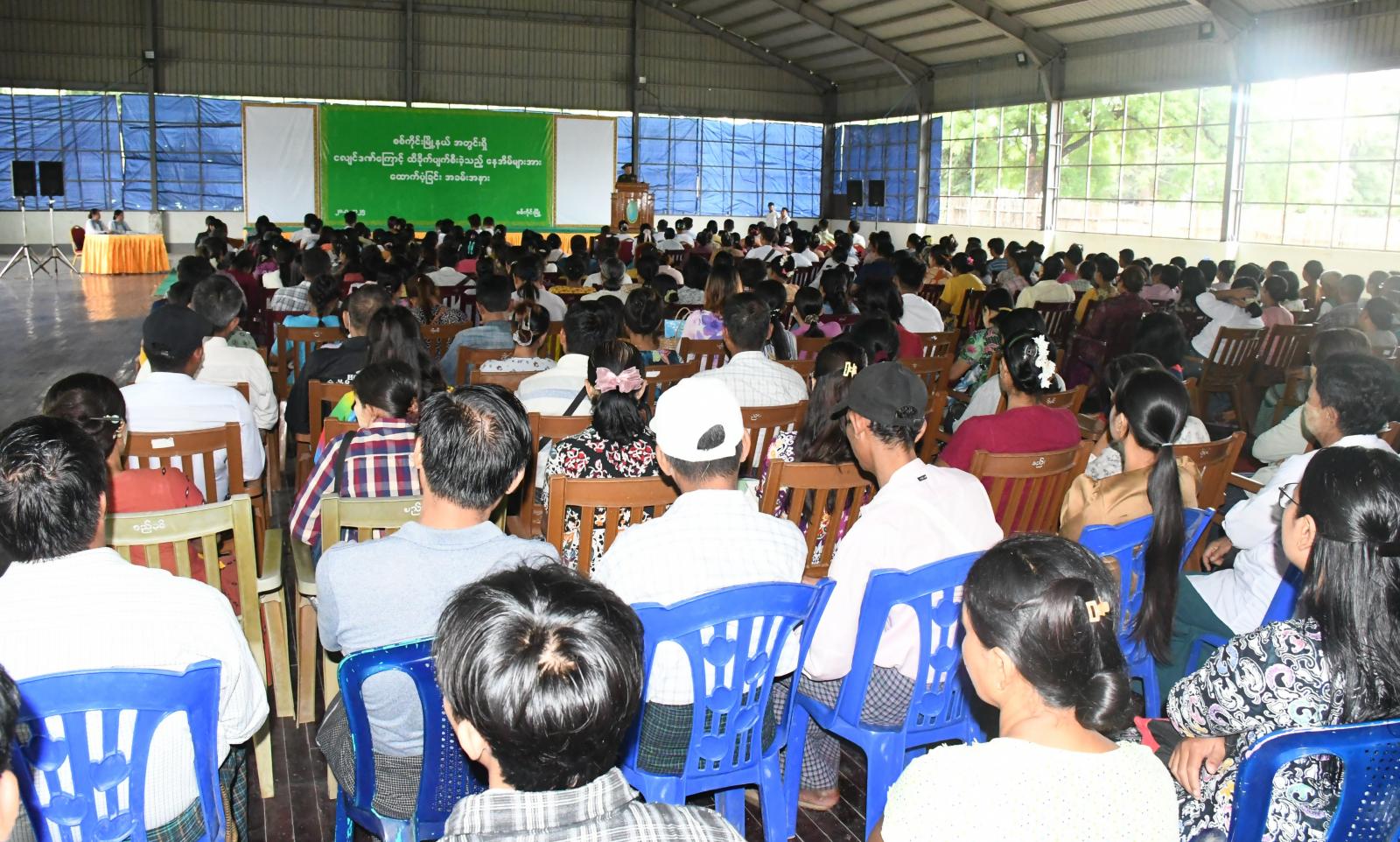 အခမ်းအနားတွင် ကာကွယ်ရေးဦးစီးချုပ်ရုံး(ကြည်း)မှ ဒုတိယဗိုလ်ချုပ်ကြီး သက်ပုံက အဖွင့်အမှာစကားပြောကြားခဲ့ပြီး၊ စစ်ကိုင်းတိုင်းဒေသကြီးအစိုးရအဖွဲ့ လူမှုရေးရာဝန်ကြီး ဦးညွန့်ဝင်းအောင်၊ ခရိုင်စီမံအုပ်ချုပ်ရေးအဖွဲ့ဥက္ကဋ္ဌ ဦးမျိုးအောင်တို့က နေအိမ်များထိခိုက် ပျက်စီးမှုအပေါ် ထောက်ပံ့ပေးမှုအခြေအနေများနှင့်ပတ်သက်၍ ရှင်းလင်းပြောကြားသည်။