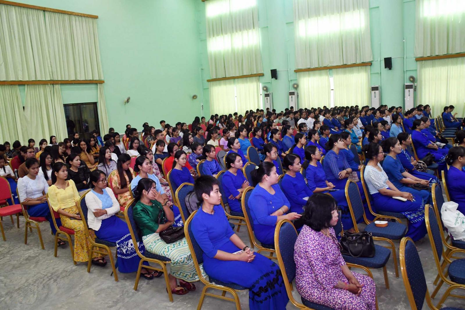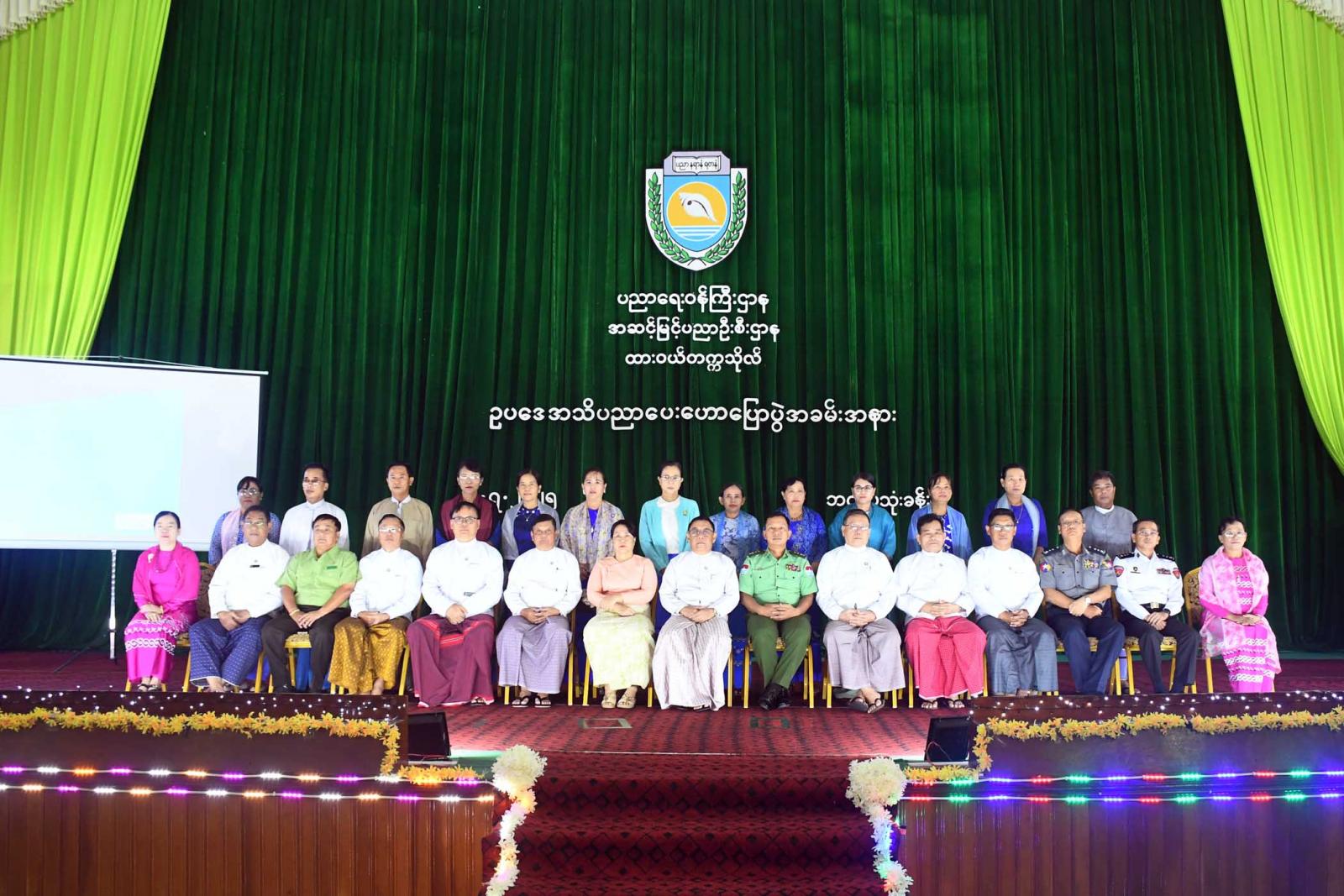 အခမ်းအနားတွင်တိုင်းဒေသကြီးဝန်ကြီးချုပ်ဦးမြတ်ကိုက မကြာခင်ပါတီစုံဒီမိုကရေစီအထွေထွေရွေးကောက်ပွဲကျင်းပမည် ဖြစ်သည့်အတွက် မဲဆန္ဒရှင်များဖြစ်ကြသည့် ဆရာဆရာမများ၊ ကျောင်းသား ကျောင်းသူများအနေဖြင့် ရွေးကောက်ပွဲနှင့် သက်ဆိုင်သည့်ဖွဲ့စည်းပုံအခြေခံဥပဒေ၊ ရွေးကောက်ပွဲဥပဒေနှင့် ရွေးကောက်ပွဲစနစ်များအကြောင်းသိသင့်သလိုစတင် အသုံးပြုမည့် မြန်မာအီလက်ထရောနစ်မဲပေးစက် (Myanmar Electronic Voting Machine) နှင့် မဲဆန္ဒပြုသောအခါတွင် လုပ်ဆောင် ရမည့်အချက်များနှင့် စပ်လျဉ်းပြီး တိုင်းဒေသကြီးဥပဒေချုပ် က ဟောပြောဆွေးနွေးမည်ဖြစ် ကြောင်း၊ ရွေးကောက်ပွဲတွင် ပြောင်းလဲကျင့်သုံးမယ့် (Proportional Representation-PR) စနစ်အကြောင်းလည်း ရှင်းပြမှာဖြစ်ကြောင်း၊ မဲဆန္ဒပြုသည့်အခါတွင် အရင်လိုအမှန်၊အမှားခြစ်ခြင်း၊ လက်သန်းဖြင့်မင်တို့ မဲပေးခြင်း၊ UEC တံဆိပ်တုံး ထုခြင်း တို့မဟုတ်ဘဲ မဲပေးစက် နှင့် မဲပေးရမည်ဖြစ်ကြောင်း၊ မဲပေးစက်ဖြင့် မဲပေးခြင်းကို အမေရိကန်နိုင်ငံအပါအဝင် နိုင်ငံပေါင်း (၃၄)နိုင်ငံက ကျင့်သုံးလျက်ရှိကြောင်း၊ မြန်မာအီလက်ထရောနစ်မဲပေးစက် (MEVM) ကို မြန်မာနိုင်ငံ အခြေအနေနှင့်ကိုက်ညီအောင် တီထွင်ထားကြောင်း၊ မဲပေးစက်သည် ရိုးရှင်းပြီး၊ မဲပေးသည့်အခါတွင်လွယ်ကူပြီး ပွင့်လင်းမြင်သာမှုရှိသော မဲရေတွက်မှုများကိုစနစ်တကျ ဒီဇိုင်းထုတ်ထားသည့်အတွက် မည်သူမျှ မဲရလဒ်များကို လိုသလို ချက်ခြင်းပြောင်းလဲနိုင်မည်မဟုတ်ကြောင်း၊ ရွေးကောက်ပွဲသည် နိုင်ငံရေး အရွေ့တစ်ခုကို ဖော်ဆောင်ခြင်းဖြစ်သည့်အတွက် ရွေးကောက်ပွဲဖြင့်သာ အများဆန္ဒဖြစ်သော ဒီမိုကရေစီနှင့် ဖက်ဒရယ်စနစ်ကို အရောက်သွားနိုင်မည်ဖြစ်ကြောင်း၊ ဟောပြောဆွေးနွေးမည့် အကြောင်းအရာများသည် မိမိအတွက်မိမိပတ်ဝန်း ကျင်အတွက်သိသင့်သိထိုက်သော ရွေးကောက်ပွဲဥပဒေ အသိပညာများဖြစ်သည့်အတွက် တန်ဖိုးရှိသော ဥပဒေဗဟုသုတများ ရရှိမည် ဖြစ်ကြောင်း ပြောကြားသည်။