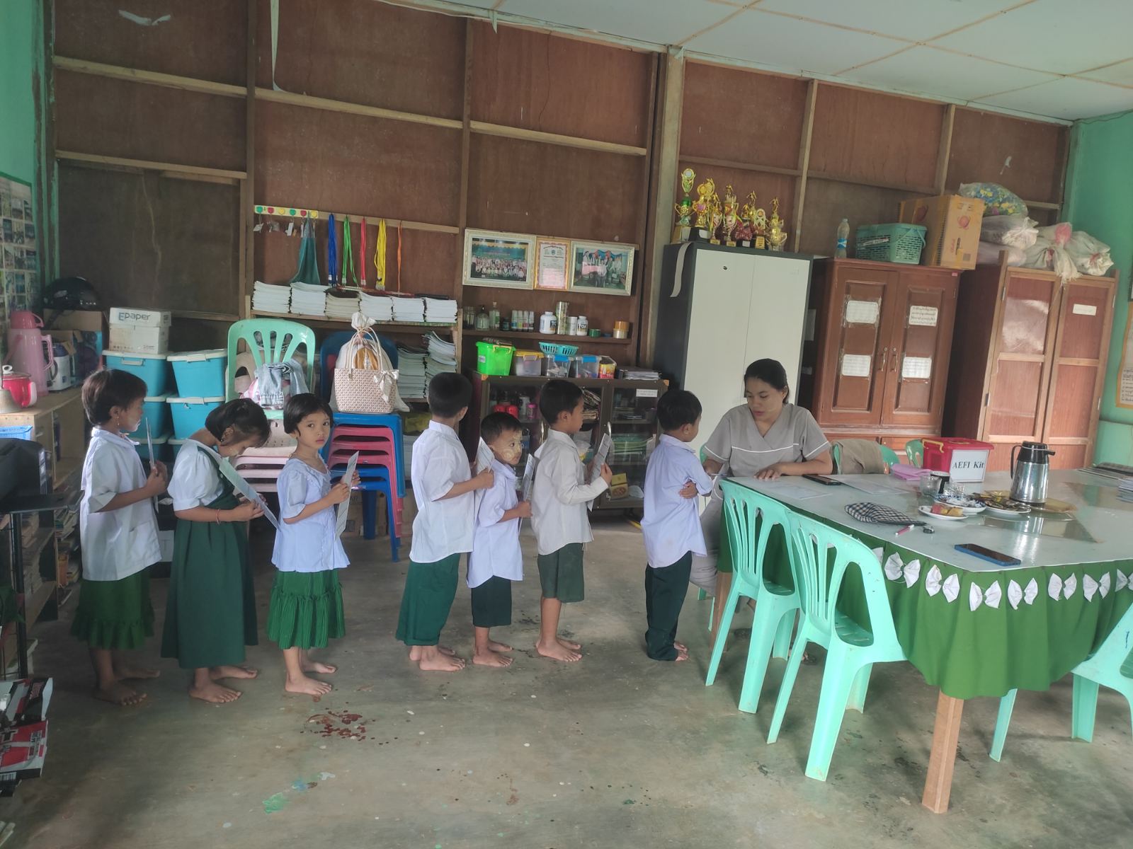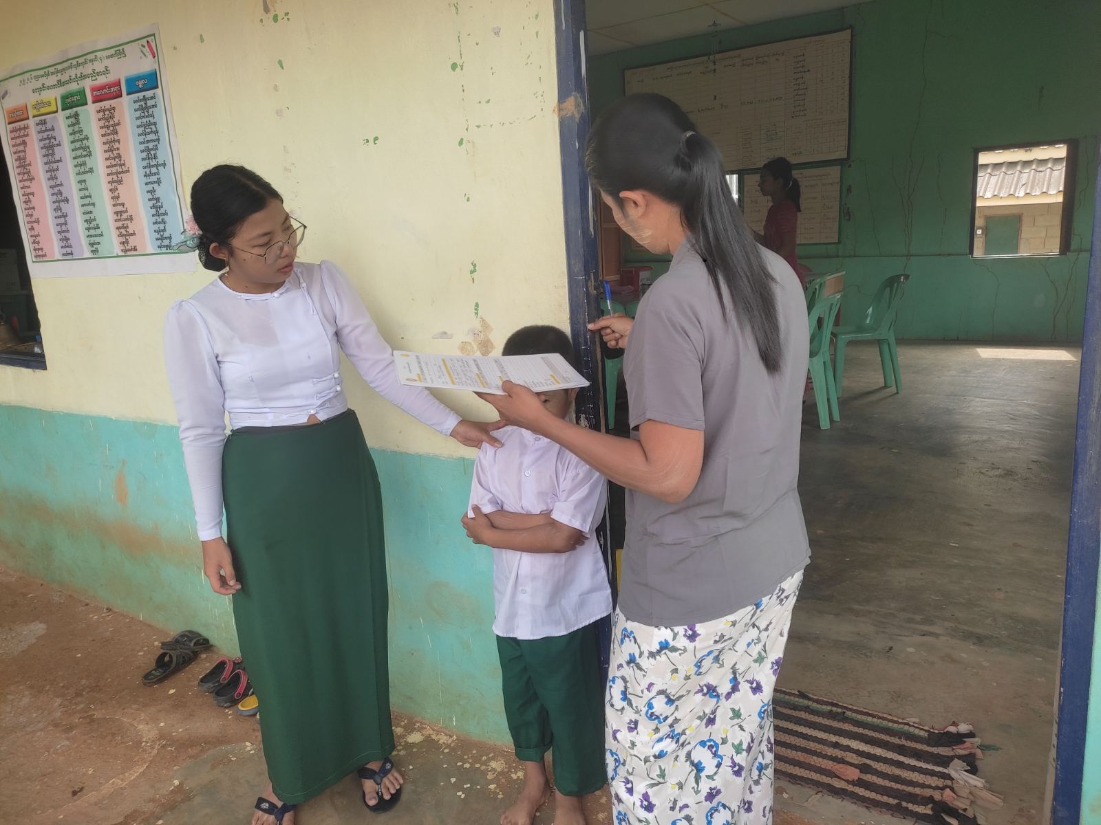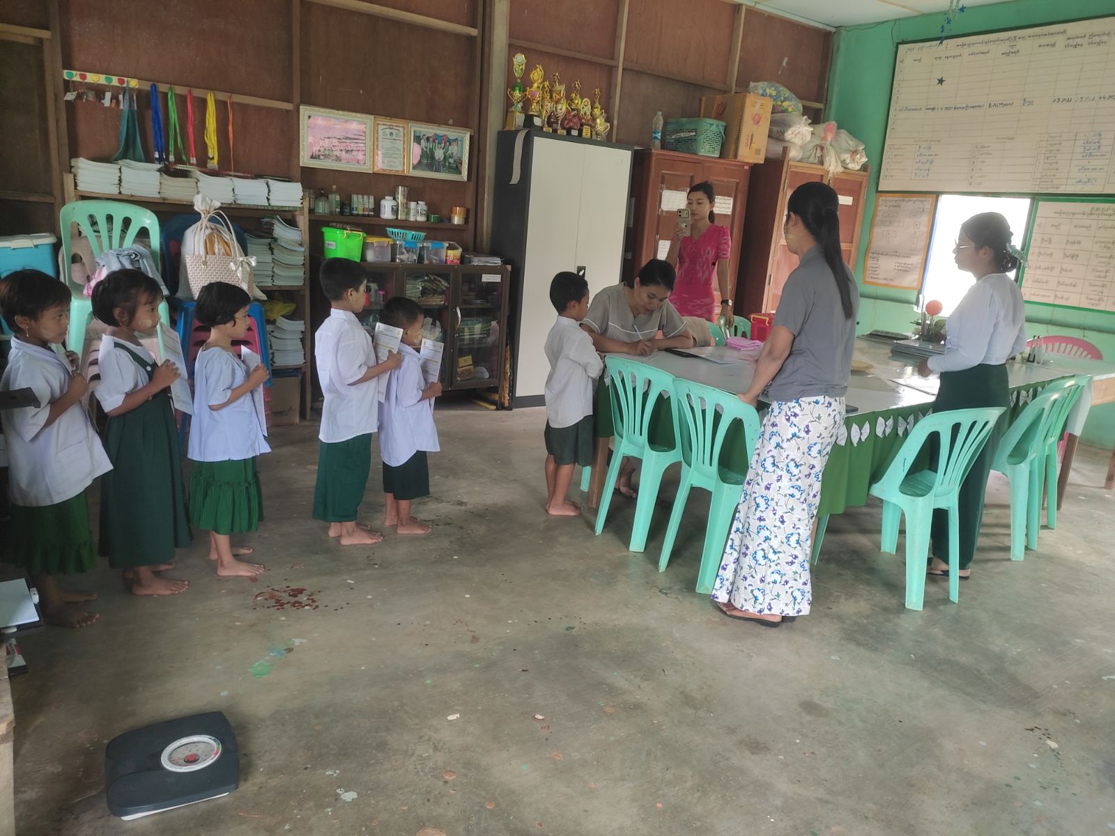 အဆိုပါကျန်းမာရေးစစ်ဆေးခြင်းနှင့်သံဓာတ်အားဆေးတိုက်ကျွေးခြင်းကို ခမောက်ကြီးမြို့ ကျေးလက်ကျန်းမာရေးဌာနခွဲမှ ဘက်စုံသားဖွားဆရာမဒေါ်ခိုင်ယမင်းပွင့်က (KG) ကျောင်းသား၊ ကျောင်းသူများအား အရပ်တိုင်းပေးခြင်း၊ ကိုယ်အလေးချိန်တိုင်းပေးခြင်း၊ သွား၊ မျက်လုံး၊ နား၊ နှာခေါင်း၊ လည်ပင်းစသည့် တစ်ကိုယ်ရည်သန့်ရှင်းမှုနှင့် ကျန်းမာရေးစစ်ဆေးခြင်း၊ သံဓာတ် အားဆေးတိုက်ကျွေးခြင်းများ ဆောင်ရွက်ခဲ့ကြောင်း သိရသည်။