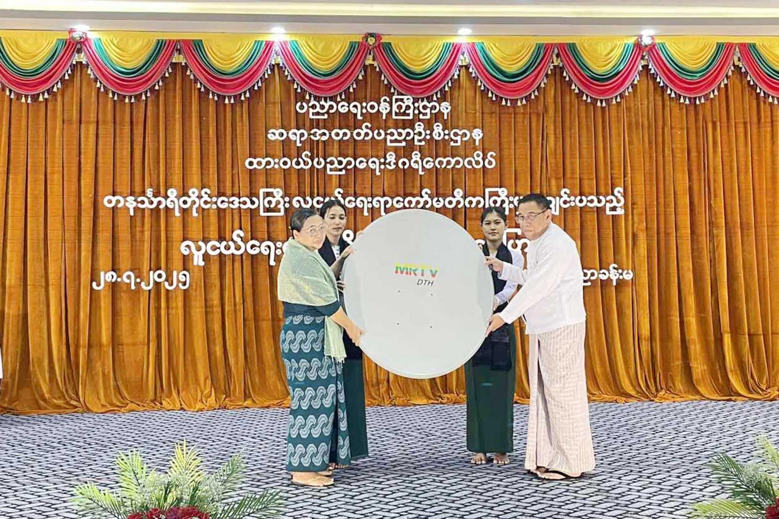 ထို့နောက် တိုင်းဒေသကြီးဝန်ကြီးချုပ်က MRTV DTH နှစ်စုံနှင့်အားကစားပစ္စည်းများပေးအပ်ရာ ထားဝယ်ပညာရေးဒီဂရီကောလိပ် ကျောင်းအုပ်ကြီး ကလက်ခံရယူသည်။