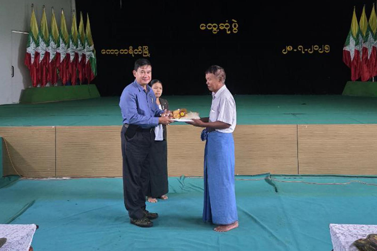 ထို့သို့ပေးအပ်ရာတွင် ကရင်ပြည်နယ်အစိုးရအဖွဲ့လုံခြုံရေးနှင့်နယ်စပ်ရေးရာဝန်ကြီး ဗိုလ်မှူးကြီး မင်းသူကျော် က ဒေသတွင်းတည်ငြိမ်းအေးချမ်းရေးနှင့် ဒေသခံပြည်သူများ၏ လူမှုရေး၊ စီးပွားရေး၊ ကျန်းမာရေး၊ ပညာရေးစသည့် လူမှုစီးပွားဘဝများပြန်လည်ဖြည့်ဆည်းဆောင်ရွက်ပေးရာတွင် အတူတကွပူးပေါင်းပါဝင်ဆောင်ရွက်ပေးကြစေလိုကြောင်း၊ မိမိတို့ပြည်နယ်အစိုးရအဖွဲ့မှလည်း လိုအပ်သည်များဆက်လက်ကူညီဖြည့်ဆည်းပေးသွားမည်ဖြစ်ကြောင်း အားပေးစကားများပြောကြားသည်။