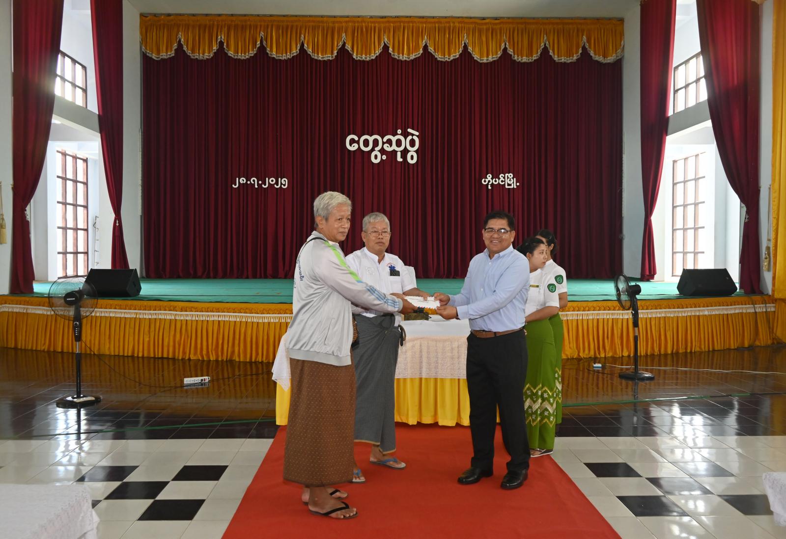 ဆက်လက်၍ ပြည်နယ်ဝန်ကြီးချုပ်က ဟိုပင်မြို့ရှိ လူမှုကူညီရေးအသင်းအဖွဲ့ (၅) ခုတို့အတွက် ချီးမြှင့်ငွေကျပ် ၂၅ သိန်းကိုလည်းကောင်း၊ ပြည်နယ်အမျိုးသမီးရေးရာအဖွဲ့ နာယက ဒေါ်နန်ဆိုင်းက အမျိုးသမီးရေးရာအဖွဲ့ဝင်များနှင့် မိခင်နှင့်ကလေးစောင့်ရှောက်ရေးအဖွဲ့ဝင်များ အား ချီးမြှင့်ထောက်ပံ့ငွေကျပ် ၁၀ သိန်းကိုလည်းကောင်း၊ ပြည်နယ်တိုင်းရင်းသားရေးရာဝန်ကြီး က ကချင်ရိုးရာနှင့် ရှမ်းစာပေယဉ်ကျေးမှုအသင်းအဖွဲ့များအတွက် ချီးမြှင့်ငွေကျပ် ၁၀ သိန်းကိုလည်းကောင်း၊ ကြာကြီးကွင်းကျေးရွာ ကွန်ကရစ်လမ်းဆောင်ရွက်နိုင်ရေးအတွက် ငွေကျပ်သိန်း ၂၀ ကို လည်ကောင်း အသီးသီးထောက်ပံ့ပေးအပ်ခဲ့ကြပြီး ပြည်နယ်ဝန်ကြီးချုပ်က နိဂုံးချုပ်အမှာ စကားပြောကြားခဲ့သည်။