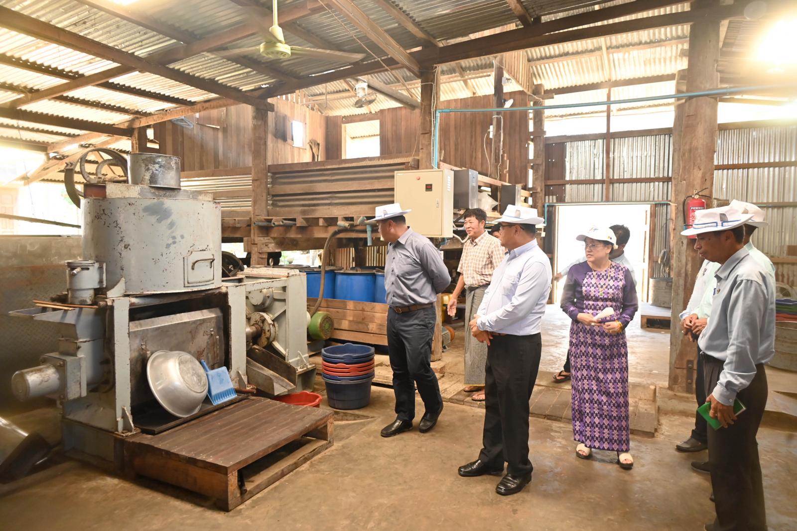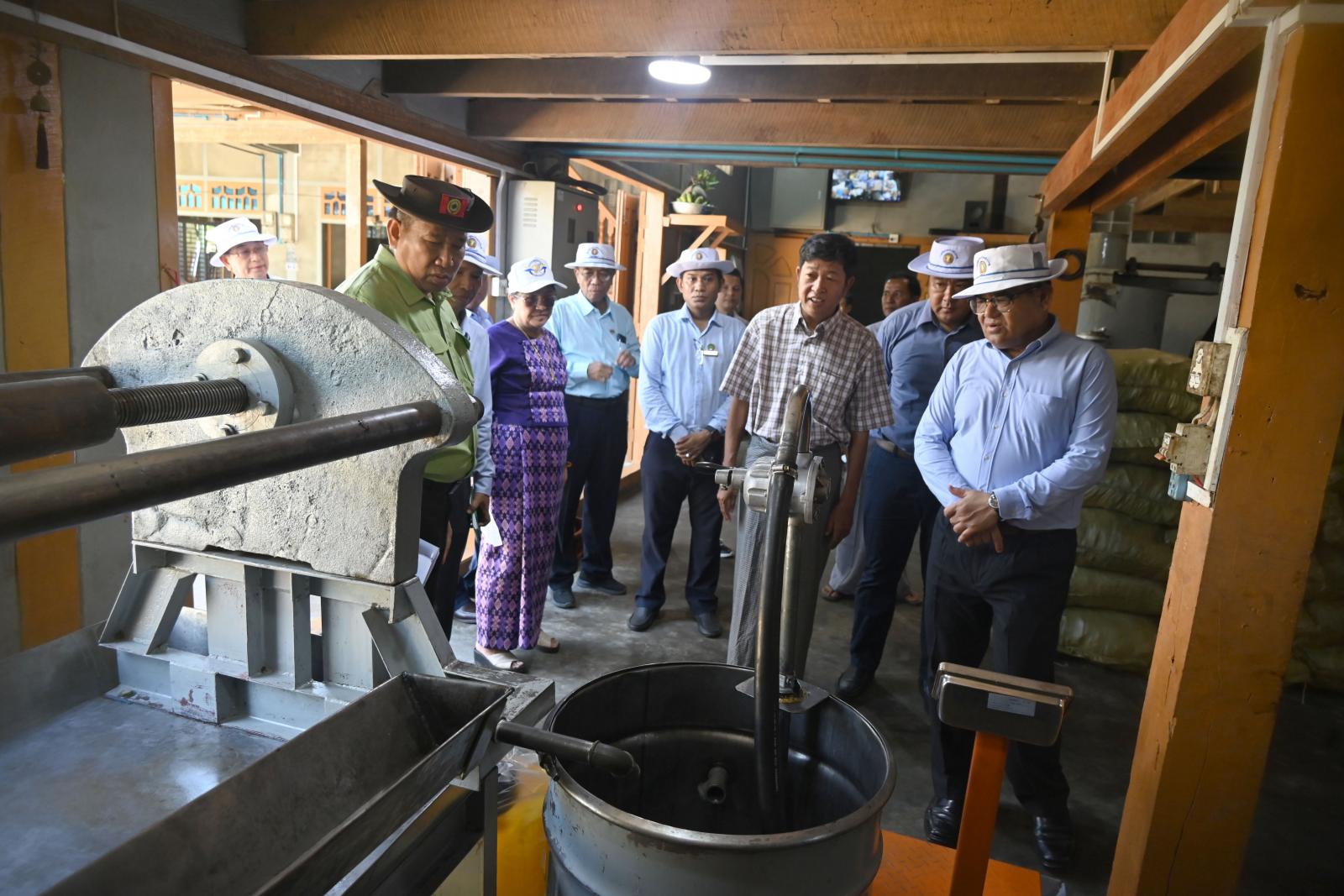 ထို့နောက် မွန်းလွဲပိုင်းတွင် ပြည်နယ်ဝန်ကြီးချုပ်နှင့် အဖွဲ့ဝင်များသည် တကွင်းကျေးရွာ အတွင်း၌ နိုင်ငံ့စီးပွားမြှင့်တင်ရေးရန်ပုံငွေမတည်ပံ့ပိုးပေးမှုဖြင့် ဆီစက်များ ပြင်ဆင်တိုးချဲ့ လုပ်ကိုင်ပိုင်ရှင်ဦးထွန်းမောင်၏ လပ်ကီးရှမ်းဆီစက်သို့ရောက်ရှိပြီး လုပ်ငန်းဆောင်ရွက်လျက်ရှိသည့် အခြေအနေများနှင့် ကုန်းကြမ်းရရှိမှု၊ ဒေသတွင်းထွက်ရှိသည့် ဆီထွက်သီးနှံများ ကြိတ်ခွဲပေးနိုင်မှုအခြေအနေများကို လှည့်လည်ကြည့်ရှုစစ်ဆေးခဲ့ကြသည်။