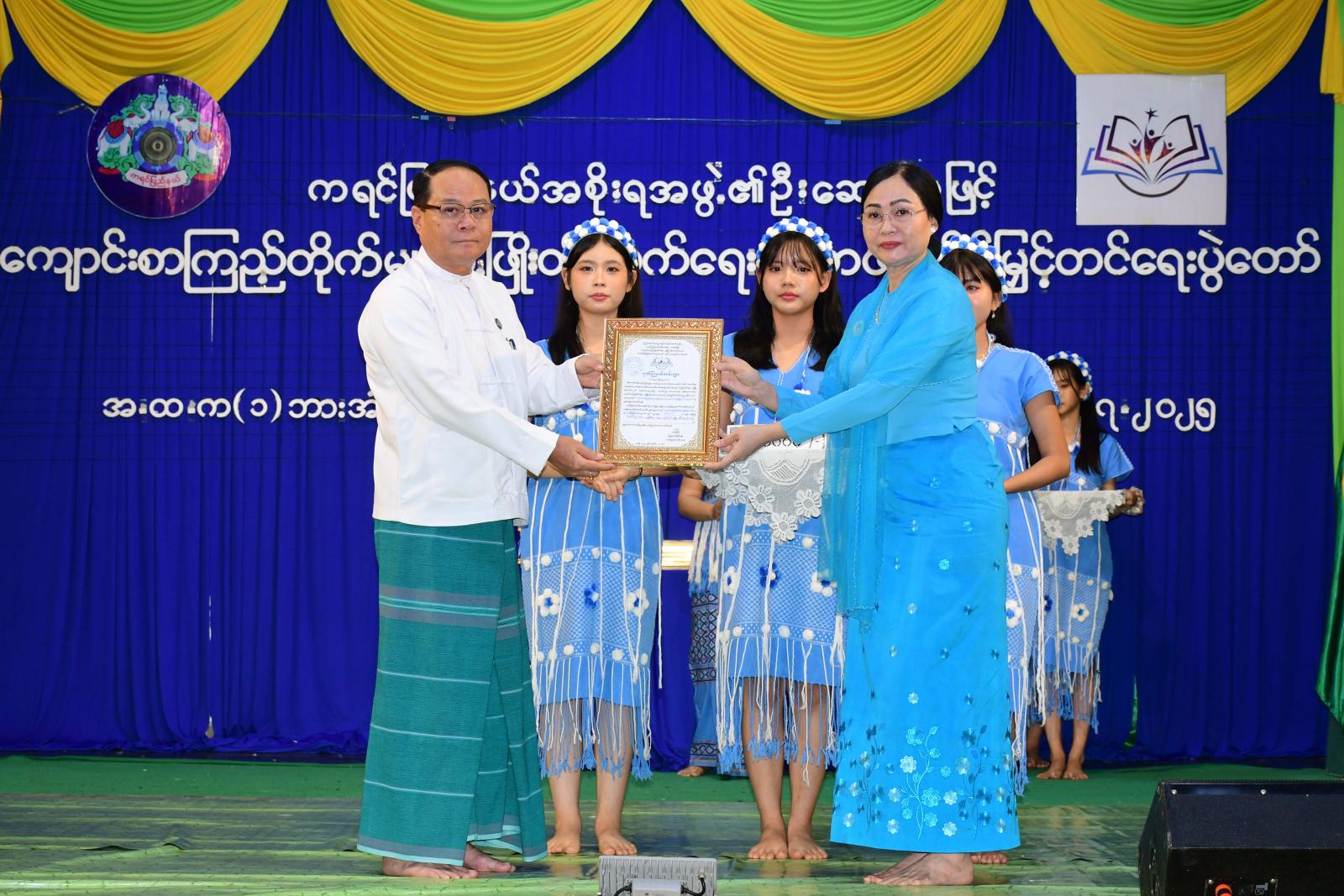 ကရင်ပြည်နယ်အစိုးရအဖွဲ့ကကြီးမှူး၍ ပြန်ကြားရေးနှင့်ပြည်သူ့ဆက်ဆံရေးဦးစီးဌာနနှင့် ပြည်နယ်ပညာရေး ဦးစီးဌာနတို့ ပူးပေါင်း၍ ဇူလိုင် ၂၈ ရက်နေ့ နံနက်ပိုင်းမှစ၍ ဘားအံမြို့၊ အမှတ် (၁) အခြေခံပညာအထက်တန်ကျောင်းတွင် ကျင်းပသော ကျောင်းစာကြည့်တိုက်များ ဖွံ့ဖြိုးတိုးတက်ရေးနှင့် စာဖတ်ရှိန်မြှင့်တင်ရေးပွဲတော် ဆုချီးမြှင့်ပွဲကို မွန်းလွဲ ၃ နာရီက အဆိုပါအထက်တန်းကျောင်း မြသံလွင်ခန်းမ၌ ကျင်းပသည်။