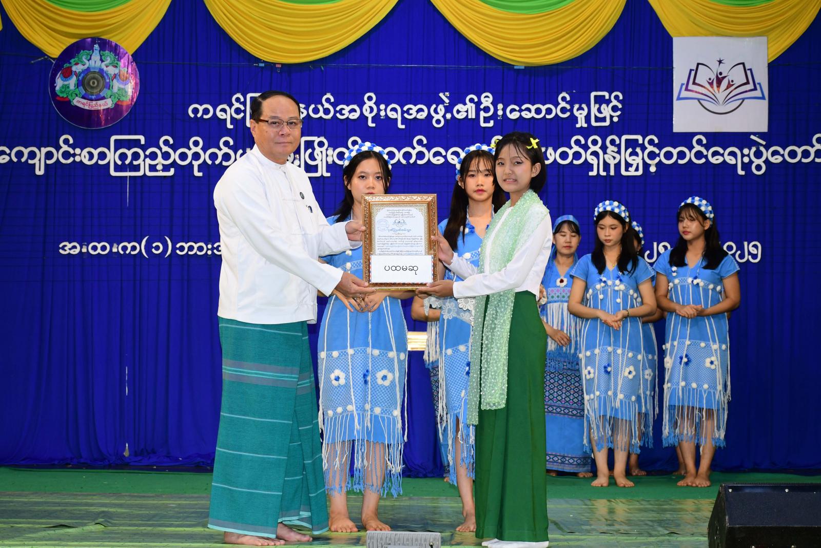 ယင်းနောက် မဟာမြကျွန်းသာကိုယ်ပိုင်အထက်တန်းကျောင်းမှ ကျောင်းသား/ ကျောင်းသူများက ထိန်းသိမ်းစို့လေ စာပေအမွေ တေးသီချင်း၊ အမှတ် (၄) အခြေခံပညာအထက်တန်းကျောင်းမှ ကျောင်းသား၊ ကျောင်းသူများက အောင်မြင်ပါစေမြန်မာပြည် သီချင်းတို့ဖြင့် သီဆိုကပြဖျော်ဖြေကြပြီး ပြည်နယ်ဝန်ကြီးချုပ်နှင့်အဖွဲ့သည် ဆုရရှိကြသူများနှင့် စုပေါင်းမှတ်တမ်းဓာတ်ပုံများ ရိုက်ကူးကြကာ ကျောင်းသား၊ ကျောင်းသူ၊ ဆရာ၊ ဆရာမများအား ရင်းနှီးနွေးထွေးစွာ တွေ့ဆုံနှုတ်ဆက်၍ အားပေးစကားများပြောကြားခဲ့ကြောင်း သိရသည်။