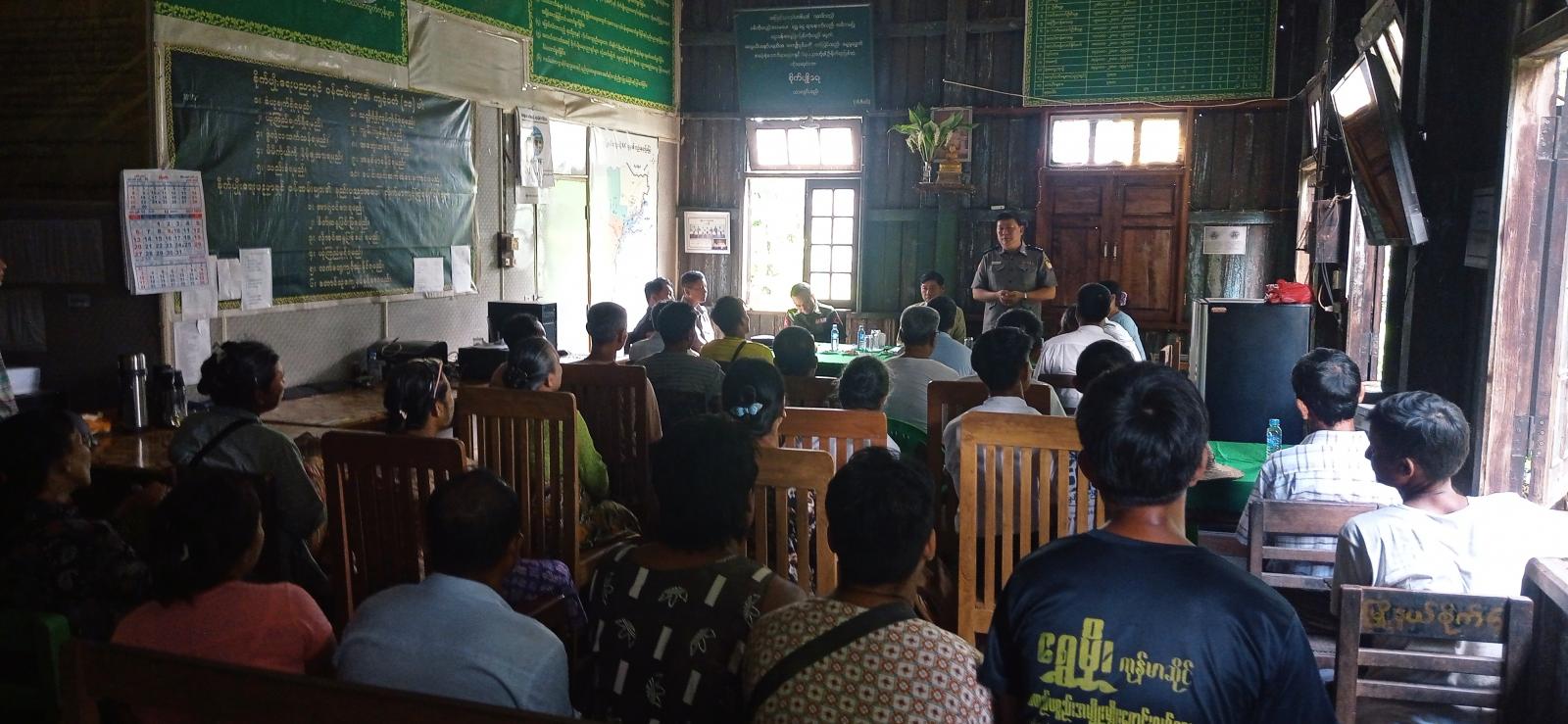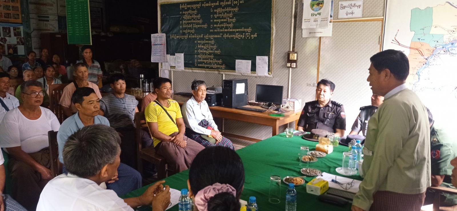 ထို့နောက်ကသာခရိုင်ရဲတပ်ဖွဲ့မှူး ဒုတိယရဲမှူးကြီး အောင်လှိုင်မြင့်နှင့် မြို့နယ်စီမံအုပ်ချုပ်ရေးအဖွဲ့ခေတ္တဥက္ကဋ္ဌ ဗိုလ်မှူးနိုင်ဝင်းတို့က မိမိတို့ရပ်ရွာ၊ မိမိတို့ဒေသ၊ မိမိတို့မိသားစု၊ မိမိတို့စည်းစိမ်ဥစ္စာတို့ကို မိမိတို့ကိုယ်တိုင်ကာကွယ်ရမှာ ဖြစ်သည့်အတွက် နိုင်ငံရေးအသိ၊ သတိဖြင့်နေထိုင်ကြရန် ပြောကြားခဲ့ကြသည်။ ဆက်လက်၍ မြို့နယ်စိုက်ပျိုးရေးဦးစီးဌာနမှူး ဦးကိုလေးက စိုက်ပျိုးရေးဆိုင်ရာ နည်းပညာများနှင့်ပတ်သက်၍ အသိပညာပေး ရှင်းလင်းဆွေးနွေးခဲ့သည်။