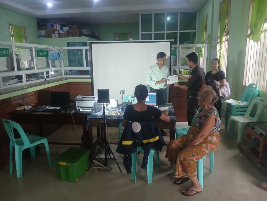 လူဝင်မှုကြီးကြပ်ရေးနှင့်ပြည်သူ့အင်အားဝန်ကြီးဌာနမှ ပြည်သူလူထုများ၏ ကိုယ်ရေးအချက်အလက်မှတ်တမ်းများကို e-IDစနစ်ဖြင့် လုပ်ငန်းကို စဉ်ဆက်မပြတ်ဆောင်ရွက်လျက်ရှိရာ သရက်ချောင်းမြို့နယ်အတွင်းရှိ နိုင်ငံ့ဝန်ထမ်း(အငြိမ်းစား)များအား ဇီဝဆိုင်ရာအချက်အလက်ကောက်ယူခြင်းနှင့် UID နံပါတ်ထုတ်ပေးခြင်းကို ယနေ့နံနက်ပိုင်းက မြန်မာ့စီးပွားရေးဘဏ်တွင် ဆောင်ရွက်ပေးသည်။