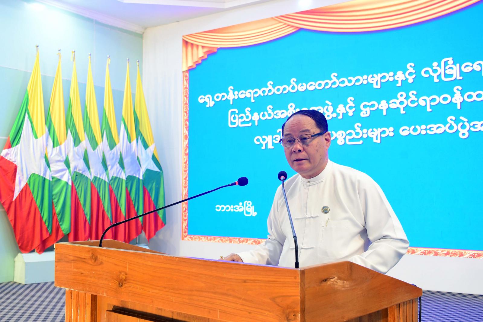 ထို့နောက် ပြည်နယ်ဝန်ကြီးချုပ်က ငွေကျပ် ၃၆၄၇၅၀၀ဝ တန်ဖိုးရှိ စားသောက်ကုန်ပစ္စည်းများကို နယ်မြေခံတပ်မှတာဝန်ရှိသူတစ်ဦးထံချီးမြှင့်ပေးအပ်ကာ လှူဒါန်းပေးကြသော ဌာနဆိုင်ရာဝန်ထမ်းမိသားစုများအား ဂုဏ်ပြုမှတ်တမ်းလွှာများ ပေးအပ်သည်။