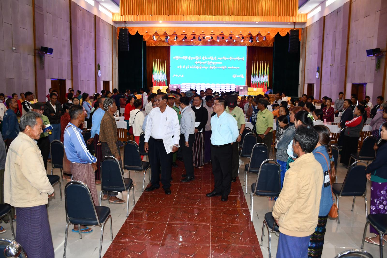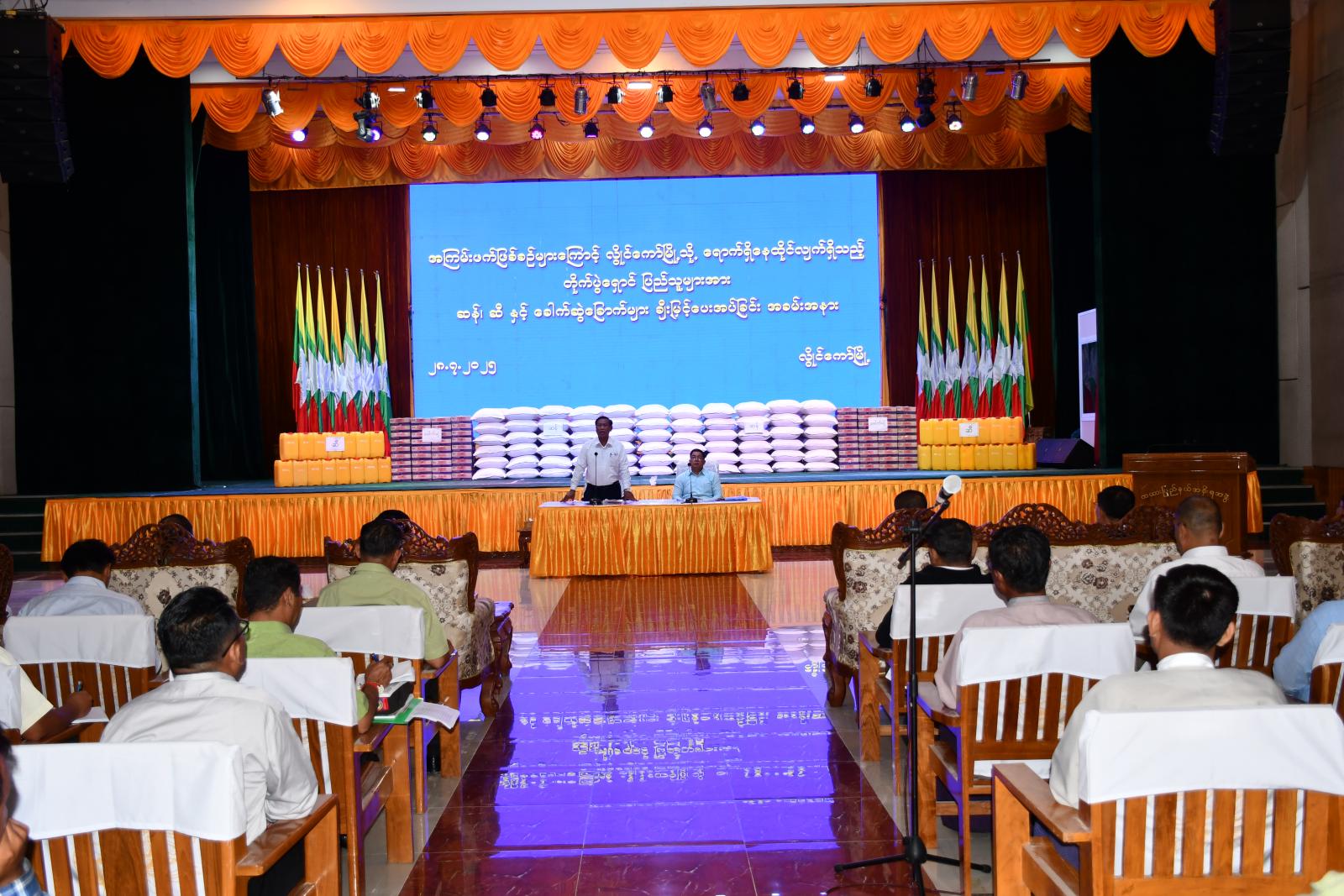 အခမ်းအနားတွင် နိုင်ငံတော်စီမံအုပ်ချုပ်ရေးကောင်စီအဖွဲ့ဝင် ပိုးရယ်အောင်သိန်းနှင့် ပြည်နယ်ဝန်ကြီးချုပ် ဦးဇော်မျိုးတင်တို့က အမှာစကားများ အသီးသီးပြောကြားခဲ့ကြသည်။ ထို့နောက် နိုင်ငံတော်စီမံအုပ်ချုပ်ရေးကောင်စီအဖွဲ့ဝင်၊ ပြည်နယ်ဝန်ကြီးချုပ်နှင့်တာဝန်ရှိသူများက ယာယီနေရပ်စွန့်ခွာပြည်သူများအား ဆန်၊ ဆီ၊ ခေါက်ဆွဲခြောက်များကို အသီးသီးပေးအပ်ခဲ့ကြပြီး တက်ရောက်လာသည့် ပြည်သူများကိုယ်စား ပြည်သူတစ်ဦးက ကျေးဇူးတင်စကားပြန်လည် ပြောကြားခဲ့သည်။ ဆက်လက်၍ တက်ရောက်လာသူများက လိုအပ်ချက်များနှင့် ဖြည့်ဆည်းပေးရန်အချက်များအား တင်ပြကြရာ ဖြည့်ဆည်းဆောင်ရွက်ပေးနိုင်မည့် အခြေအနေများကို တာဝန်ရှိသူများက ပြန်လည်ရှင်းလင်းပြောကြားခဲ့ကြပြီး တက်ရောက်လာသူများအား ရင်းရင်းနှီးနှီး နှုတ်ဆက်အားပေးစကားများ ပြောကြားခဲ့သည်။