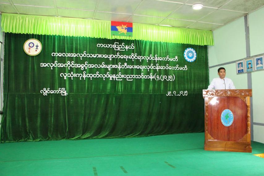 အခမ်းအနားတွင် ပြည်နယ်အလုပ်သမားညွှန်ကြားရေးဦးစီးဌာန ညွှန်ကြားရေးမှူး ဦးသူရိမ်လင်းက သင်တန်းဖွင့်လှစ်ရခြင်းရည်ရွယ်ချက်နှင့် သင်တန်းအဖွင့်အမှာစကားပြောကြားပြီး သင်တန်းသုံးကုန်ကြမ်းပစ္စည်းများကို သင်တန်းဆရာထံ လွှဲပြောင်းပေးအပ်ခဲ့ကာ အမှတ်တရစုပေါင်းမှတ်တမ်းတင်ဓါတ်ပုံရိုက်ကူးခဲ့ကြသည်။