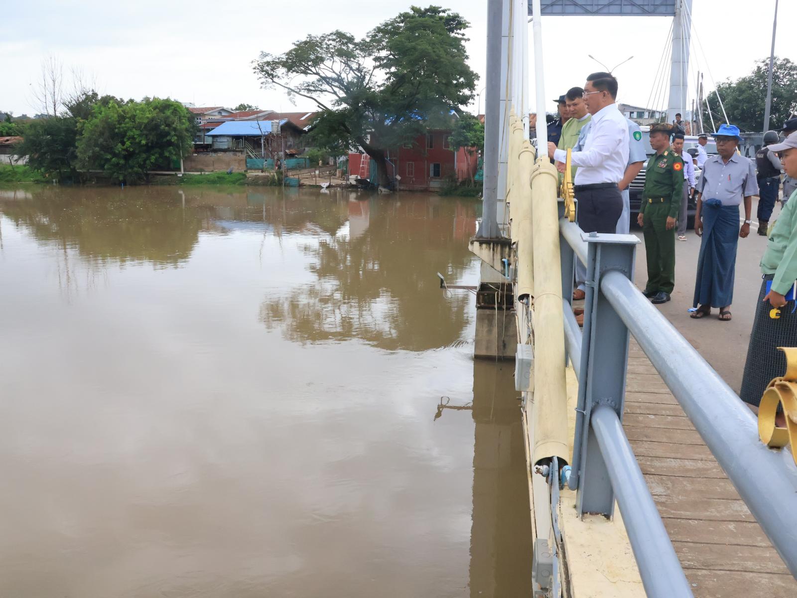 ဆက်လက်၍ ဘီလူးချောင်း(ရှမ်းပိုင်း)တံတားတွင် ဘီးလူချောင်းရေမြင့်တက်မှုအခြေအနေများနှင့် တံတားကြံ့ခိုင်မှုများကို ကြည့်ရှုစစ်ဆေးပြီး ဘီးလူချောင်းဘေးတစ်လျှောက် အနိမ့်ပိုင်းရပ်ကွက်များအတွင်း ရေဝင်ရောက်မှုမရှိစေရန် အုတ်ရိုးတာပေါင်များအား ထပ်မံမြှင့်တင်ကာရံခြင်း၊ ရေတံခါးများတပ်ဆင်ခြင်းလုပ်ငန်းများ ဆောင်ရွက်သွားရန်၊ ထူးခြားမှုအခြေအနေများအား အချိန်နှင့်တစ်ပြေးညီတင်ပြရန် တာဝန်ရှိသူများအား မှာကြားခဲ့သည်။