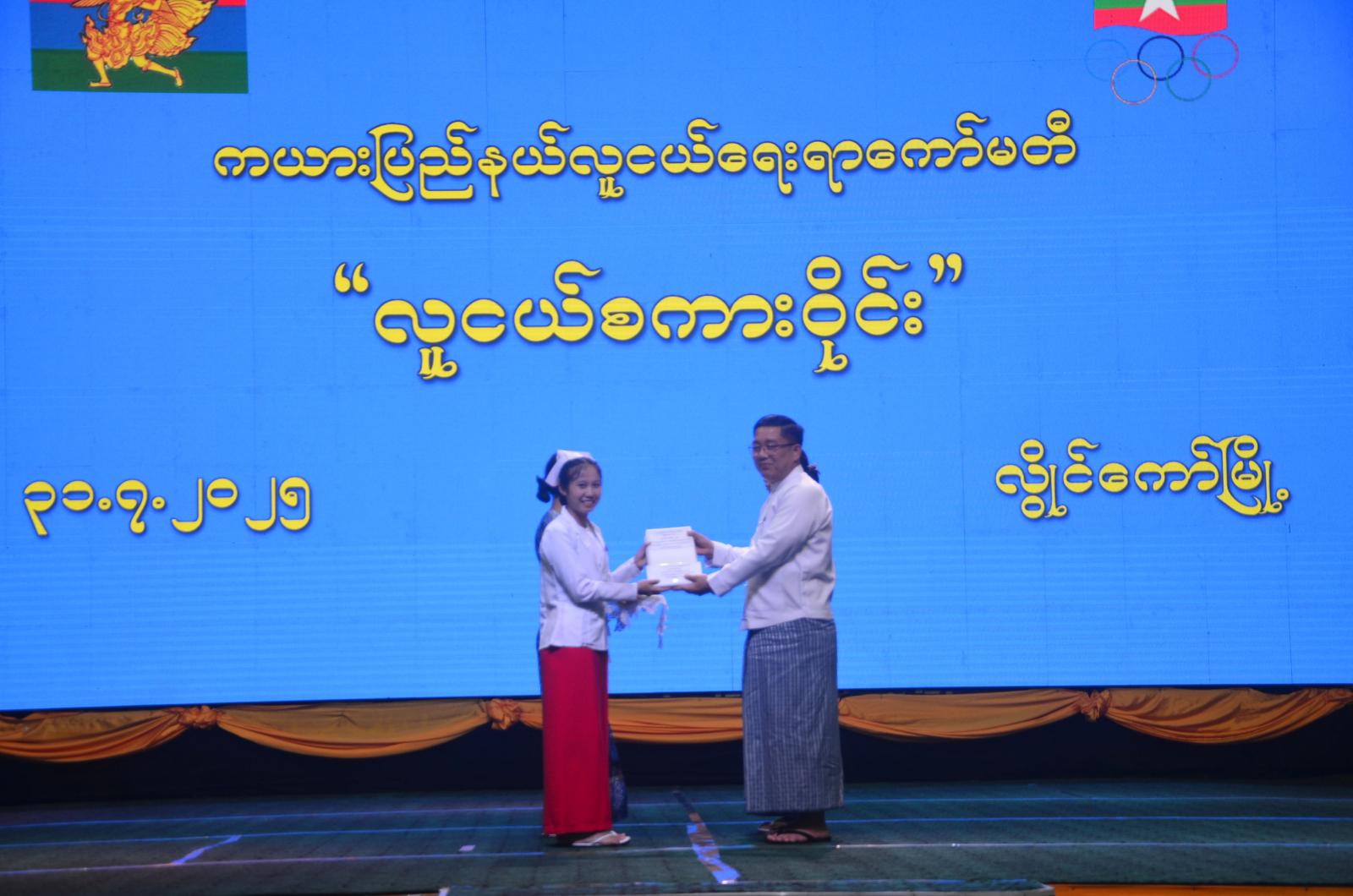 ဆက်လက်၍ ပြည်နယ်ဝန်ကြီးချုပ်က အခမ်းအနားအတွက် ချီးမြှင့်ငွေများ၊ ဂုဏ်ပြုလက်ဆောင်များကို ဦးဆောင်ဆွေးနွေးသူနှင့် ပါဝင်ဆွေးနွေးကြသည့် ကျောင်းသား၊ ကျောင်းသူများအားပေးအပ်ရာ တာဝန်ရှိသူအသီးသီးကလည်းကောင်း၊ ပြည်နယ်အစိုးရအဖွဲ့ဝင်များက ပါဝင်ဆွေးနွေးကြသူများနှင့် ကပြဖျော်ဖြေခဲ့ကြသည့် ကျောင်းသား၊ ကျောင်းသူများအား ဂုဏ်ပြုဆုများအသီးသီးပေးအပ်ခဲ့ပြီး အမှတ်တရစုပေါင်းမှတ်တမ်းတင်ဓာတ်ပုံ ရိုက်ကူးခဲ့ကြသည်။