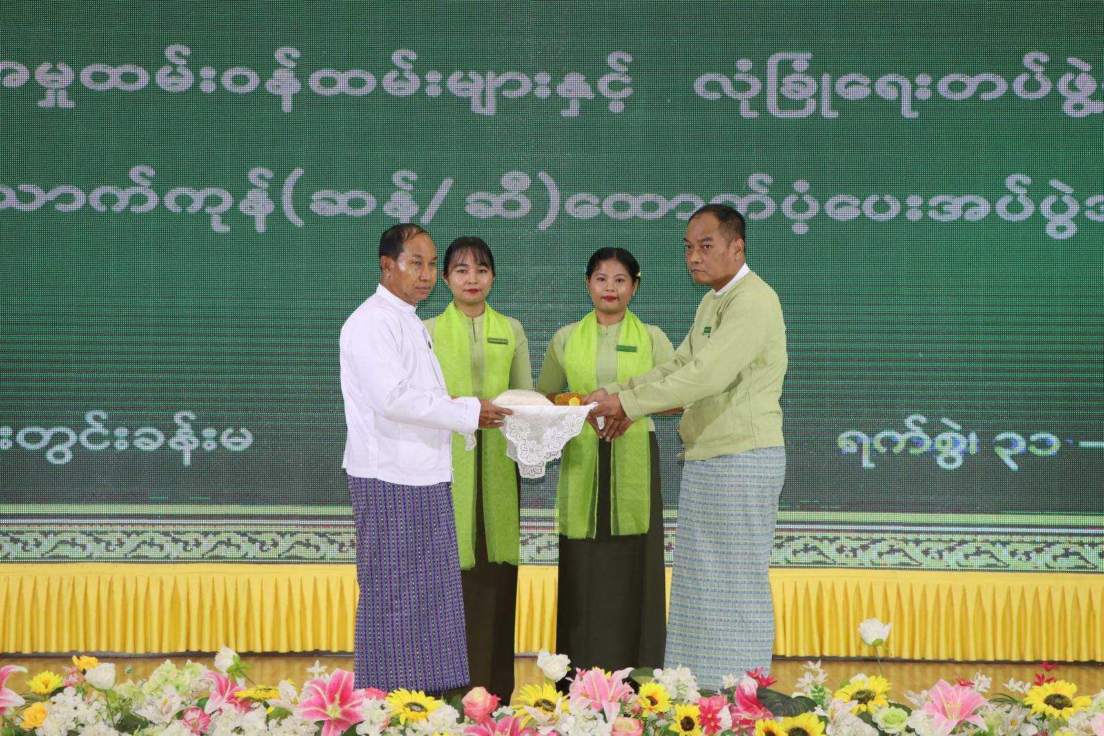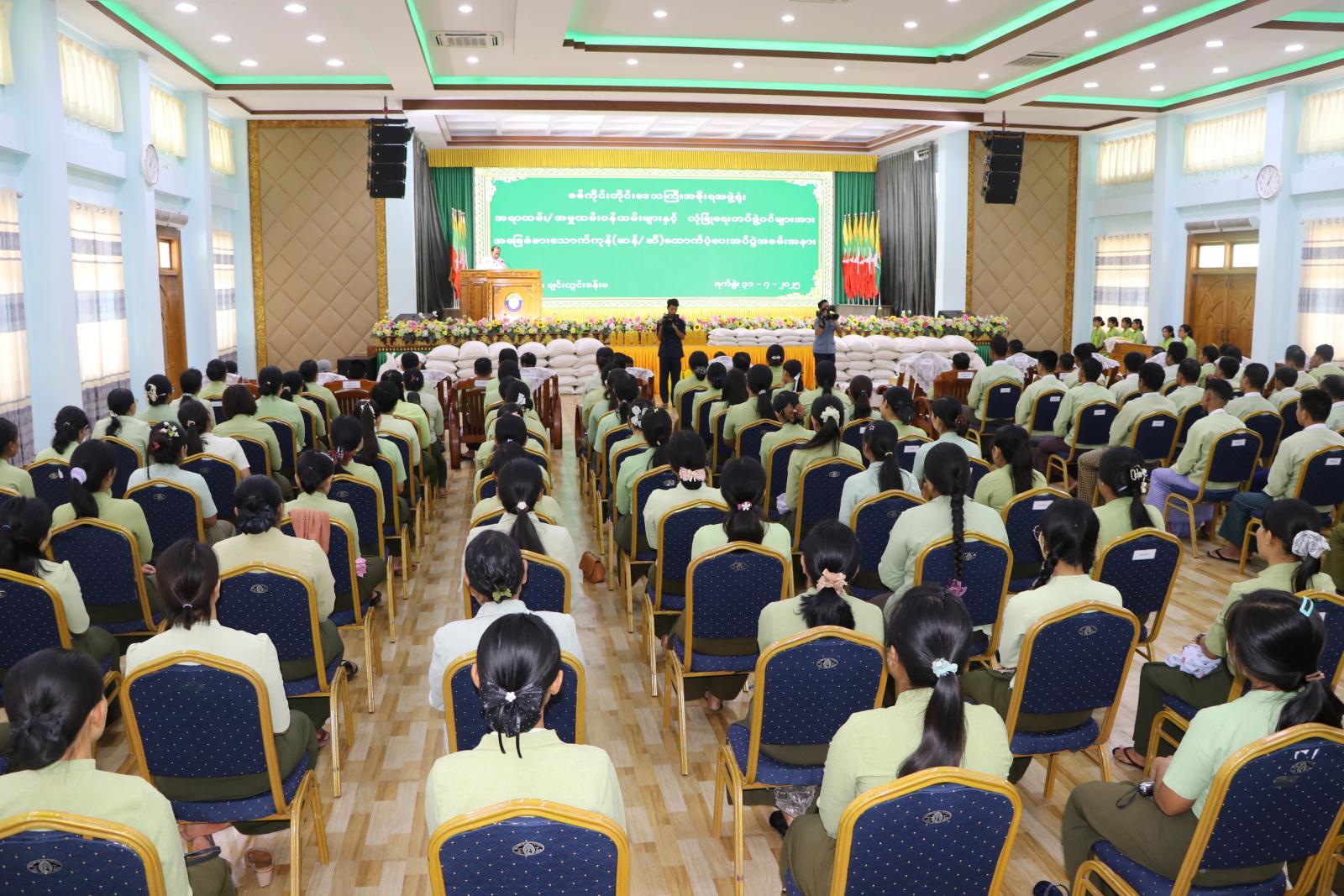 ယင်းနောက် တိုင်းဒေသကြီး ဝန်ကြီးချုပ်နှင့်ဇနီး၊ တိုင်းဒေသကြီး အစိုးရအဖွဲ့ဝင် များနှင့်ဇနီးများက တိုင်းဒေသကြီး အစိုးရအဖွဲ့ရုံး၊ တိုင်းဒေသကြီး အထွေထွေအုပ်ချုပ်ရေးဦးစီးဌာနရုံးတွင် တာဝန်ထမ်းဆောင်နေကြသည့် အရာထမ်း/အမှုထမ်းဝန်ထမ်းများနှင့် လုံခြုံရေးတပ်ဖွဲ့ဝင်များအား ဆန်နှင့်ဆီများအား အသီးသီး ပေးအပ်ကြသည်။