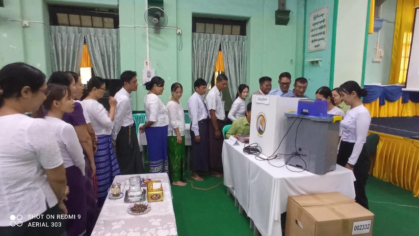 ထို့နောက် ထားဝယ်ခရိုင် ရွေးကောက်ပွဲကော်မရှင်ရုံးမှ ရွေးကောက်ပွဲအရာရှိ ဦးသက်ထူးတင်က MEVM စက်အသုံးပြုရခြင်းနှင့် စပ်လျဉ်း၍ Power Point ဖြင့် ရှင်းလင်းပြောကြားပြီး လောင်းလုံးမြို့နယ်အုပ်ချုပ်ရေးမှူး၊ ဦးအောင်မြတ်ထိုက်နှင့် ဝန်ထမ်းများ၊ ခရိုင်၊ မြို့နယ်ရွေးကောက်ပွဲကော်မရှင်ရုံးမှ တာဝန်ရှိသူများ၊ ဌာနဆိုင်ရာအကြီးအကဲများနှင့် ဝန်ထမ်းများ၊ ဖိတ်ကြားထားသောဧည့်သည်တော်များက ရွေးကောက်ပွဲနေ့တွင် ဆောင်ရွက်ရမည့် အစီအစဉ်များအတိုင်း မြန်မာအီလက်ထရောနစ် မဲပေးစက်အသုံးပြု၍ လက်တွေ့စမ်းသပ်မဲပေးခြင်းကို လက်တွေ့သရုပ်ပြဆောင်ရွက်ခဲ့ကြကြောင်း သိရသည်။