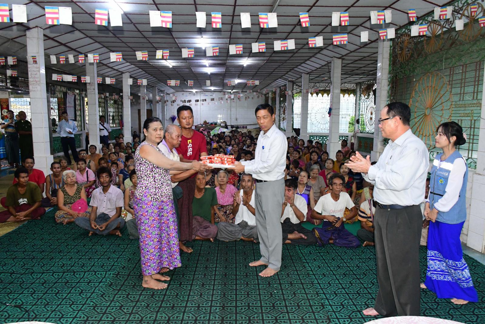 အဆိုပါယာယီရေဘေးကယ်ဆယ်ရေးစခန်းများရှိ အိမ်ထောင်စု စုစုပေါင်း ၅၈၁ စု၊ လူဦးရေ ၂၇၉၀ဦး အတွက် လူမှုဝန်ထမ်း၊ ကယ်ဆယ်ရေးနှင့်ပြန်လည်နေရာချထားရေးဝန်ကြီးဌာနမှ ချီးမြှင့်သော ဆန်ရိက္ခာနှင့်ခေါက်ဆွဲခြောက်ဖိုးငွေများ ပေးအပ်ချီးမြှင့်ခဲ့ပြီး လူမှုဝန်ထမ်း၊ ကယ်ဆယ်ရေးနှင့် ပြန်လည်နေရာချထားရေးဝန်ကြီးဌာနအနေဖြင့် ရေဘေးစတင်ဖြစ်ပွားချိန်မှ ယနေ့အချိန်ထိ အိမ်ထောင်စု ၁၈၃၄ စု၊ လူဦးရေ ၉၁၉၁ ဦး အတွက် ဆန်ရိက္ခာနှင့် ခေါက်ဆွဲခြောက်ဖိုးငွေ ၄၆၇၄၈၂၅ဝိ/-ကျပ်ကို ပေးအပ်ချီးမြှင့်ခဲ့ကြောင်း သိရသည်။