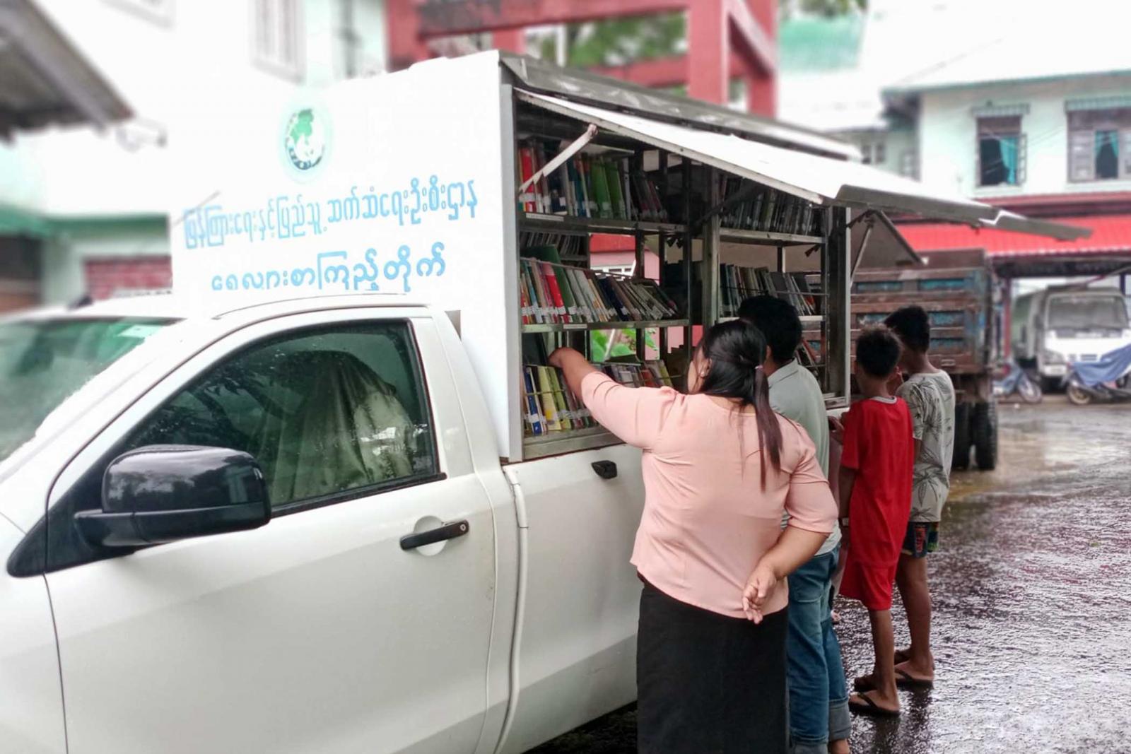 ရွေ့လျားစာကြည့်တိုက် Mobile Library Bus တွင် ဝတ္ထု၊ မဂ္ဂဇင်း၊ ရုပ်ပြနှင့် အသိပညာ ဗဟုသုတများစွာရရှိမည့် သုတ/ရသစာအုပ်စာစောင်များ (၄၀၀)အုပ်ပါရှိပြီး ငှားရမ်းပေးခဲ့သော စာအုပ်များကို (၃)ရက်လျှင် တစ်ကြိမ်လဲလှယ်ပေးသွားမည်ဖြစ်ကြောင်း သိရသည်။