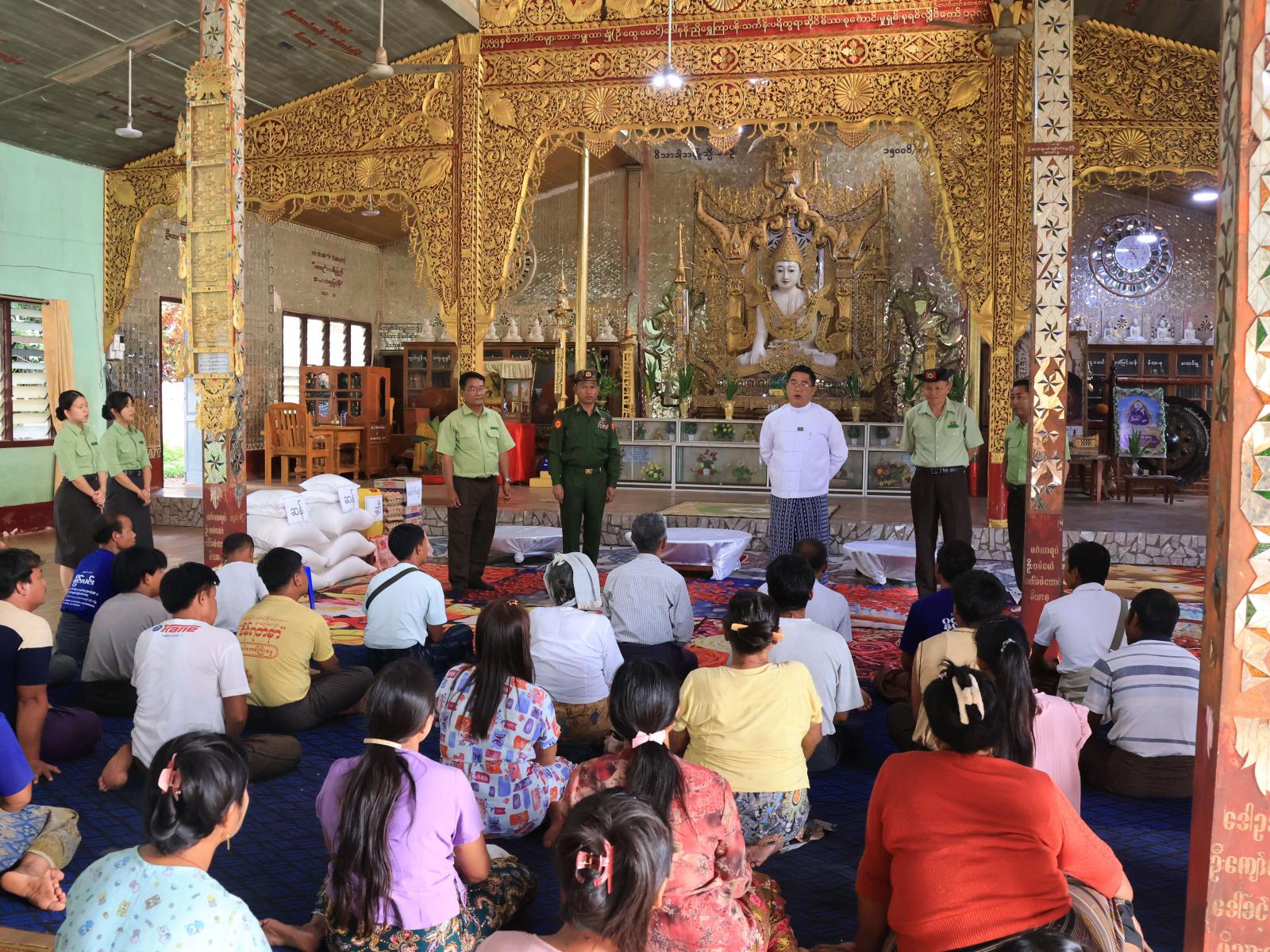 ထို့နောက် ပြည်နယ်ဝန်ကြီးချုပ်က စုရပ်နေရာတွင် နေထိုင်စဉ်ကာလအတွင်း ကျန်းမာရေးစောင့်ရှောက်မှုများပေးရေး၊ ကျောင်းနေအရွယ် ကလေးငယ်များ နီးစပ်ရာကျောင်းများတွင် တက်ရောက်ပညာသင်ကြားနိုင်ရေးနှင့် ပြည်သူများ ၎င်းတို့၏ကျေးရွာများတွင် ပြန်လည်ဝင်ရောက်နေထိုင်နိုင်ရေးအတွက် စနစ်တကျ စိစစ်နေရာချထားပေးနိုင်ရေးနှင့် စိုက်ပျိုးမွေးမြူရေးနှင့် မူလအသက်မွေးဝမ်းကျောင်းလုပ်ငန်းများ ပြန်လည်လည်ပတ်လုပ်ကိုင်နိုင်ရေး အတတ်နိုင်ဆုံး ကူညီဆောင်ရွက်ပေးကြရန် တာဝန်ရှိသူများအား မှာကြားပြီး လိုအပ်သည်များ ပေါင်းစပ်ညှိနှိုင်းပေးခဲ့သည်။ ထို့နောက် ပြည်နယ်ဝန်ကြီးချုပ်နှင့် တာဝန်ရှိသူများက ယာယီနေရပ်စွန့်ခွာပြည်သူများသို့ ဆန်၊ ဆီ၊ ကြက်ဥနှင့် ခေါက်ဆွဲခြောက်များပေးအပ်ရာ ကိုယ်စားလှယ်အသီးသီးက လက်ခံရယူခဲ့ကြကြောင်း သိရသည်။