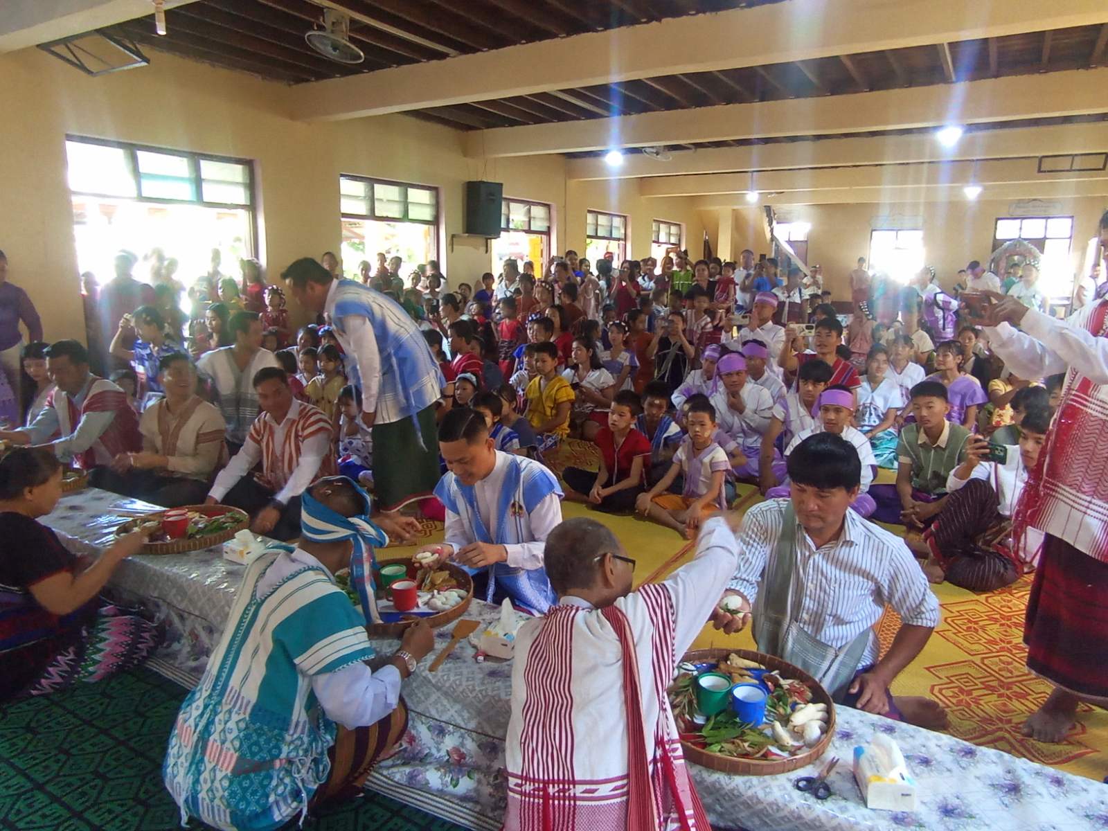 ရှေးဦးစွာ ဆရာတော်၊သံဃာတော်များထံမှ ငါးပါးသီလနှင့်ဩဝါဒများကိုခံယူပြီး စစ်ဗျူဟာအဖွဲ့ (အခြေချ)လှိုင်းဘွဲ စစ်ဗျူဟာမှူး ဗိုလ်မှူးကြီး စိုးမင်းအောင်က အမှာစကားပြောကြားခဲ့သည်။ ထို့နောက် မြို့နယ်ကရင်စာပေနှင့်ယဉ်ကျေးမှုတိုးတက်ပြန့်ပွားရေးအသင်းဥက္ကဋ္ဌ ဦးအုန်းတင်က ကရင်ရိုးရာဝါခေါင်လ ချည်ဖြူဖွဲ့မင်္ဂလာအခမ်းအနား နှစ်စဉ်ကျင်းပရခြင်း၏ ရည်ရွယ်ချက်၊ ကရင်တိုင်းရင်းသားအားလုံးတို့သည် မိမိတို့၏ ရိုးရာ၊ယဉ်ကျေးမှု၊ ဓလေ့ထုံးတမ်း၊ စာပေများ ထိန်းသိမ်းစောင့်ရှောက်ခြင်း၊ မြတ်နိုးတန်းဖိုးထားတတ် ခြင်းတို့ကို ပြောကြားခဲ့ပြီး ဝါခေါင်လချည်ဖြူဖွဲ့မင်္ဂလာစာတမ်းကို မြန်မာဘာသာနှင့်ကရင်ဘာသာတို့ဖြင့် ကရင်တိုင်းရင်းသား လူငယ်မောင်မယ်များက ဖတ်ကြားခဲ့ကြသည်။