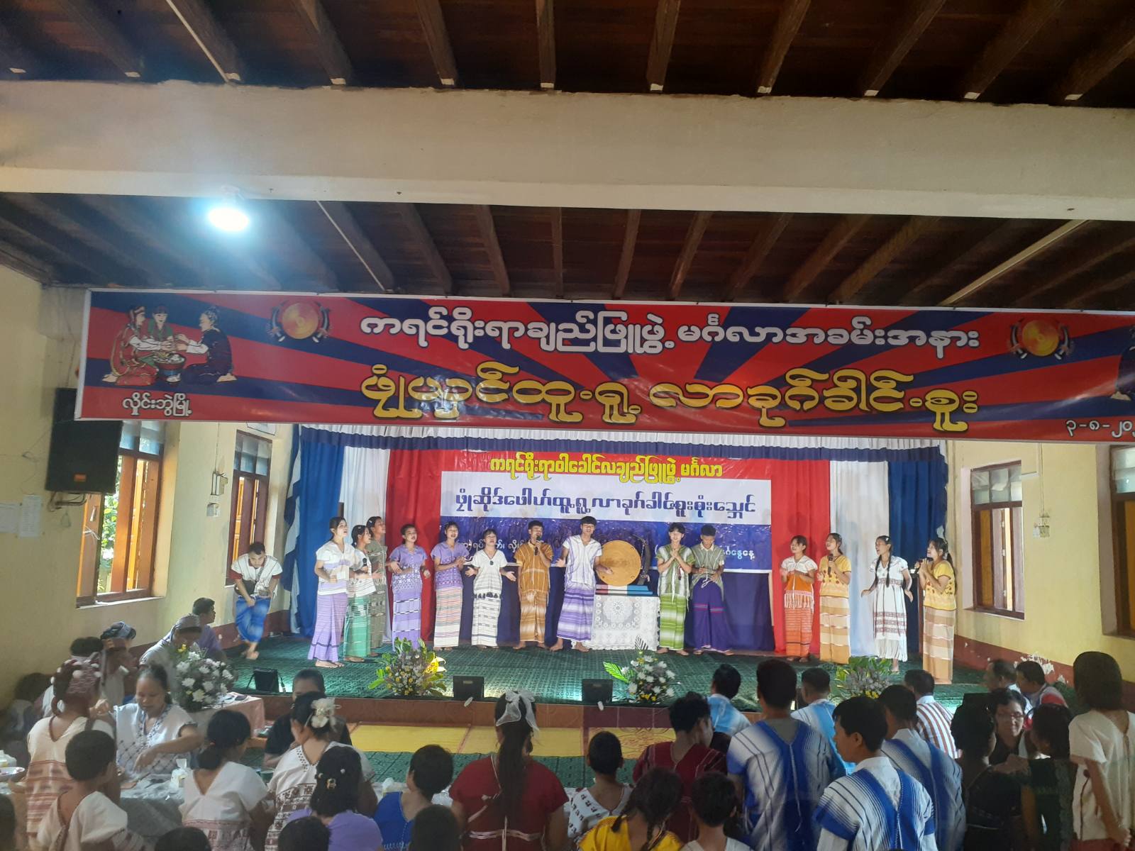 ဆက်လက်၍ လိပ်ပြာမောင်နှံခုနှစ်ဖေါ်အား ဖိတ်ခေါ်ပြီး ချည်ဖြူဖွဲ့မင်္ဂလာပွဲတွင် တက်ရောက်လာသော မြို့နယ်စီမံအုပ်ချုပ်ရေးအဖွဲ့ဝင်များ၊ ဌာနဆိုင်ရာတာဝန်ရှိသူများ၊ မြို့နယ်ကရင်စာပေနှင့် ယဉ်ကျေးမှု တိုးတက်ပြန့်ပွားရေးအသင်းအဖွဲ့ဝင်များနှင့်ပရိတ်သတ်များအား တစ်ဦးနှင့်တစ်ဦး ချည်ဖြူဖွဲ့ခြင်း၊ ဆုတောင်းမေတ္တာပို့သခြင်းနှင့် ကရင်တိုင်းရင်းသား လူငယ်မောင်မယ်များက ကရင်ရိုးရာ တေးသီချင်းများ၊ စည်လုံးညီညွှတ်ခြင်း တေးသီချင်းများဖြင့် ကပြဖျော်ဖြေပေးခဲ့ကြောင်း သိရသည်။