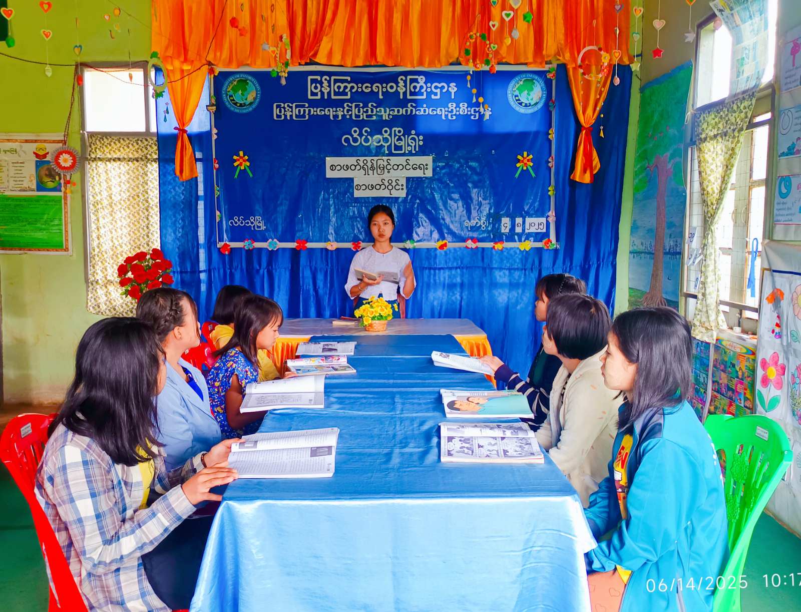 bvxထို့နောက် ကျောင်းသား၊ ကျောင်းသူလူငယ်များဖြင့် စာဖတ်ဝိုင်းပြုလုပ်ရာ Grade-8 ကျောင်းသူ နော်အေးအေးနှင်းက “ အောင်မြင်သူတို့အကြောင်း ” ခေါင်းစဉ်အောက်မှ “ ဘဝအောင်မြင်ဖို့အတွက် ဇွဲ၊ လုံ့လ၊ ဝီရိယ၊ သတိ တို့နဲ့ရင်းပြီး ကြိုးစားရမှာဖြစ်ကြောင်း၊ ဘဝအတွက် ကြိုးစားတဲ့အချိန်မှာ ပေါင်းသင်းနေရတဲ့ သူငယ်ချင်းတွေဟာ မိတ်ဆွေလား၊ ရန်သူလား ခွဲခြားသိဖို့လိုကြောင်း၊ ဆုံးဖြတ်ချက်တစ်ခုမှားသွားရင် ဘဝတစ်လျှောက်လုံး အမှားတွေနဲ့သာ ရင်ဆိုင်နေရမှာဖြစ်ကြောင်း စသည့် အကြောင်းအရာများကို ဆွေးနွေးခဲ့ရာ ကျောင်းသား၊ ကျောင်းသူများက မိမိတို့၏ အတွေးအမြင်၊ အယူအဆ၊ ခံယူချက်စိတ်ထားများကို အချင်းချင်း အပြန်အလှန်ဆွေးနွေးခဲ့ကြသည်။