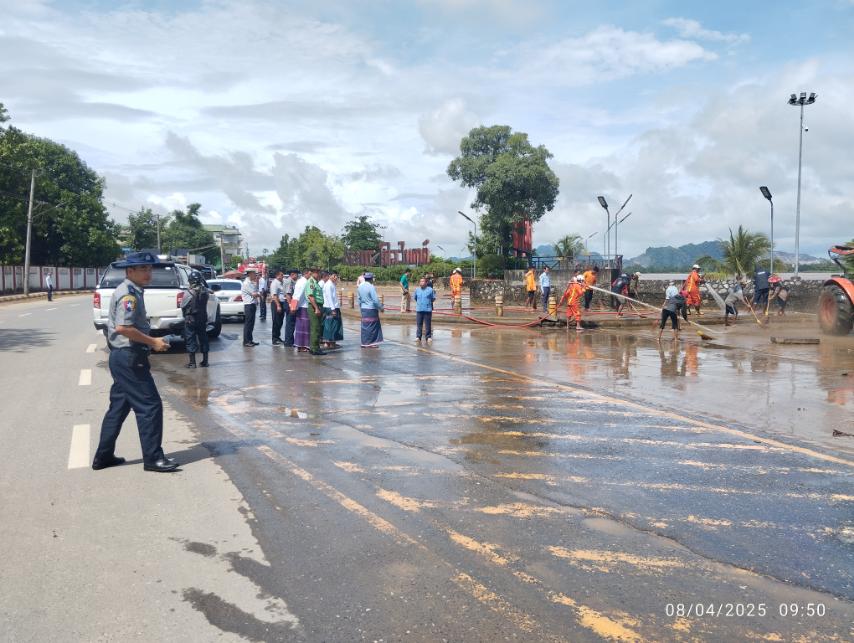 ကရင်ပြည်နယ်၊ ဘားအံမြို့တွင် မိုးသည်းထန်စွာရွာသွန်းပြီး သံလွင်မြစ်ရေမြင့်တက်လာသည့်အတွက် ဘားအံမြို့၏ စိုးရိမ်ရေအမှတ် ၇၅၀ စင်တီမီတာအထက် ၉၃၅ စင်တီမီတာအထိမြင့်တက်၍ ရေကြီးရေလျှံမှုများဖြစ်ပွားခဲ့ရာ ယခုအခါ သံလွင်မြစ်ရေသည် ၈၃၀ စင်တီတာ အောက်သို့ပြန်လည်ကျဆင်းနေပြီဖြစ်၍ ရေကြီးနစ်မြုပ်ခဲ့သော ကမ်းနားလမ်းတစ်လျှောက်နှင့် ဘုန်းတော်ကြီးကျောင်းများ၊ စာသင်ကျောင်းများ၊ ရပ်ကွက်များတွင် ယမန်နေ့နံနက်ပိုင်းက စုပေါင်းသန့်ရှင်းရေးလုပ်ငန်းများဆောင်ရွက်ခဲ့ကြောင်း သိရသည်။