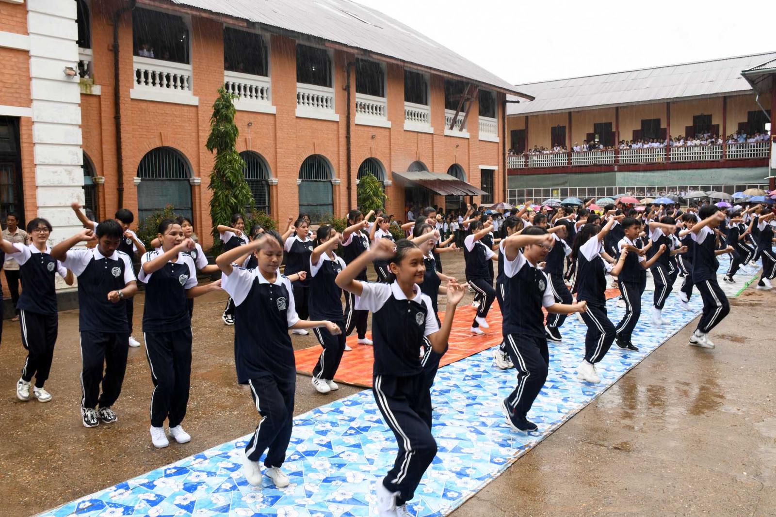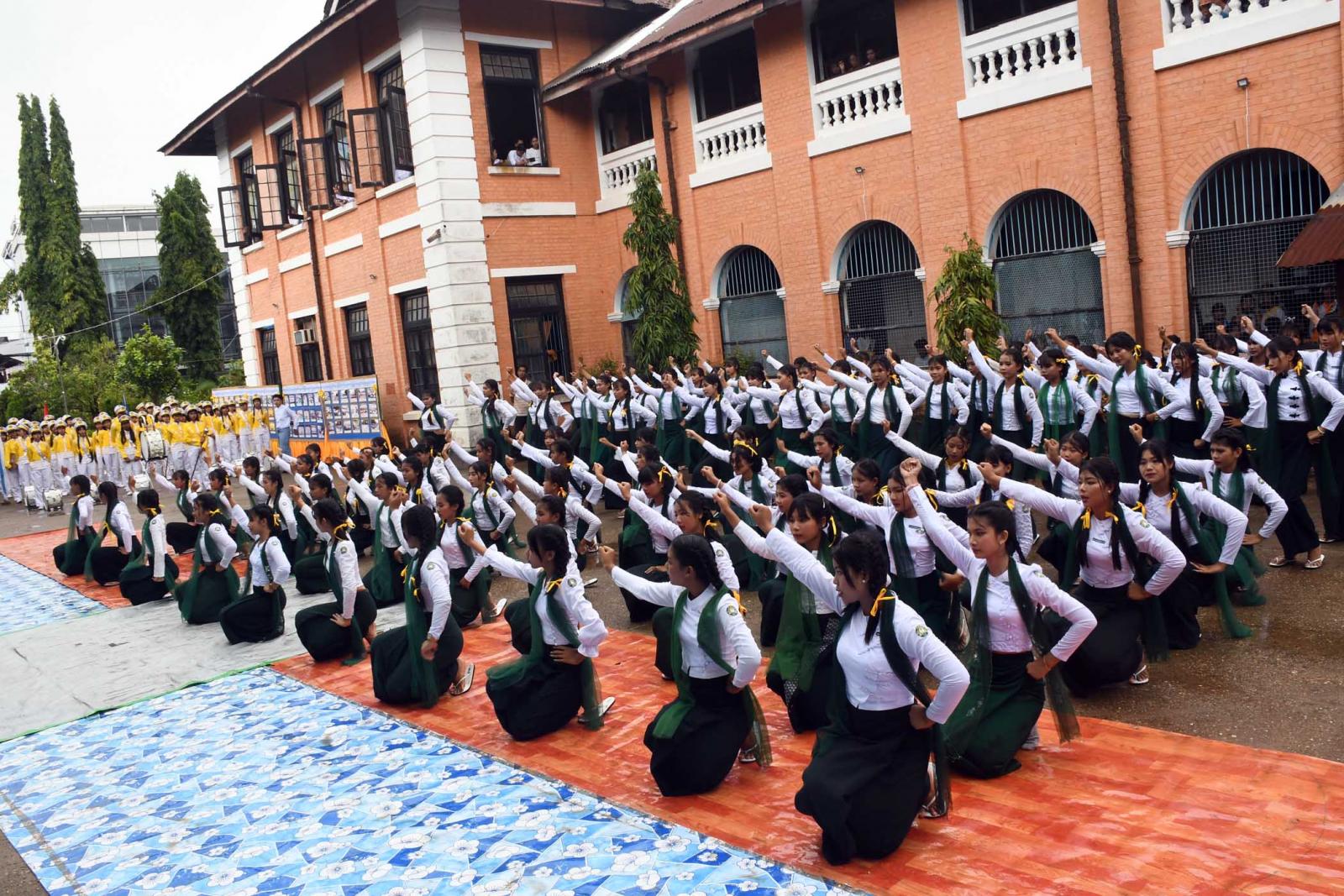 ထို့နောက် အထက(၃)မှ ကျောင်းသား/ကျောင်းသူများ က “မြန်မာအကအလှ”သီချင်းဖြင့် အကပြခြင်း၊ (ပညာရွှေပြည်) ဆရာမိုးဒီ ကိုယ်ပိုင်အထက် တန်းကျောင်းမှ Fitness Dance အကဖြင့် ကပြခြင်းနှင့် ဘင်ခရာအဖွဲ့နှင့် ပန်းပွားအဖွဲ့တို့က တီးမှုတ်ကပြ ဖျော်ဖြေနေမှုကို တိုင်းဒေသကြီးဝန်ကြီးချုပ်နှင့် တာဝန်ရှိသူများ က ကြည့်ရှုအားပေးပြီး ဂုဏ်ပြု ဆုငွေ များချီးမြှင့်သည်။