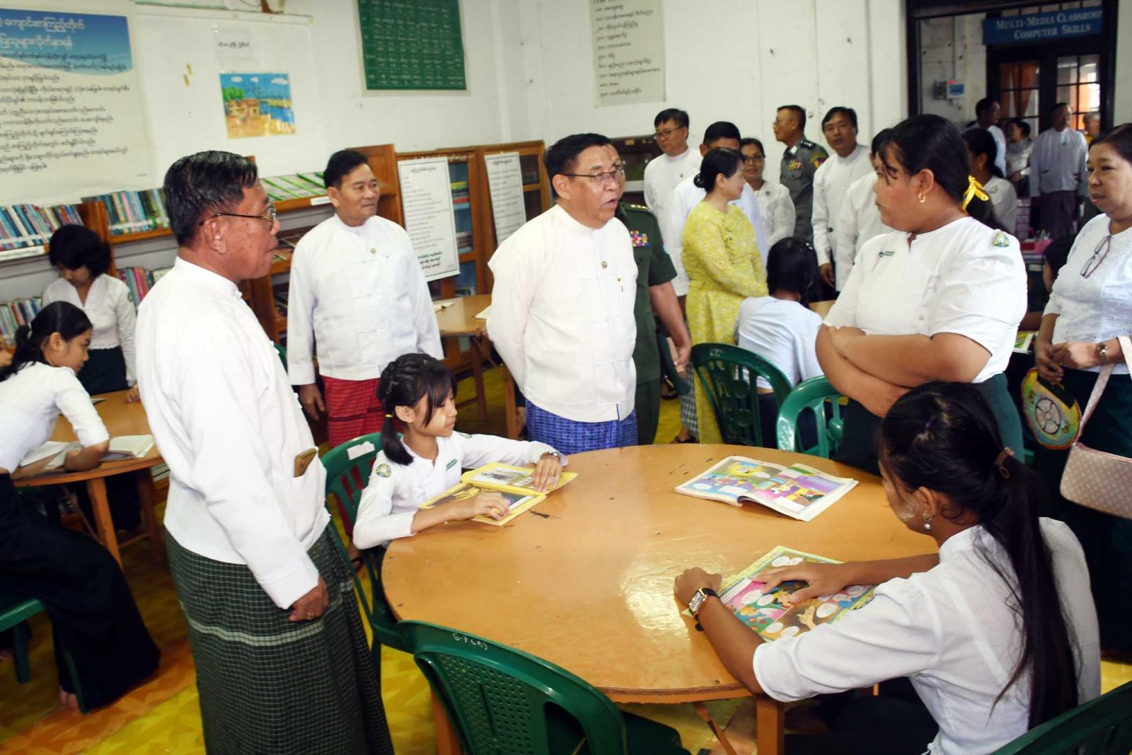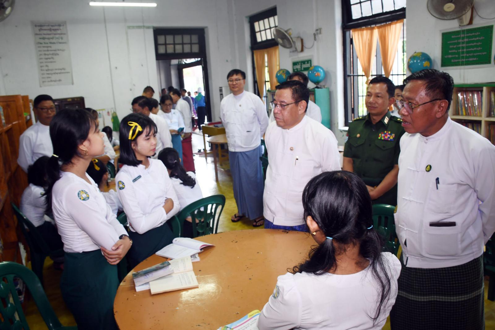 ဆက်လက်၍တိုင်းဒေသကြီးဝန်ကြီးချုပ်နှင့်တာဝန်ရှိသူများက စာကြည့်တိုက်များဖွံ့ဖြိုးတိုးတက်ရေးနှင့် စာဖတ်ရှိန်မြှင့်တင် ရေးပွဲတော်အတွင်းခင်းကျင်းပြသထားသည့် စာကြည့်တိုက်များဖွံ့ဖြိုးတိုးတက်ရေး နှင့် စာဖတ်ရှိန် မြှင့်တင်ရေးဆောင်ရွက်မှု မှတ်တမ်းဓာတ်ပုံများ၊ အထက်တန်းအဆင့် ကျပန်းစကားပြောပြိုင်ပွဲ၊ အထက်တန်းအဆင့်စာစီစာကုံးပြိုင်ပွဲ၊အလယ်တန်း အဆင့်စာစီစာကုံးပြိုင်ပွဲများ၊ အလယ်တန်းအဆင့် စာဖတ်စွမ်းရည်ပြိုင်ပွဲနှင့်မူလတန်းအဆင့်ပုံပြင်ပြောပြိုင်ပွဲများ၊ ပျော်ပွဲရွှင်ပွဲအနေဖြင့် ဆေးရောင်ခြယ်ပြိုင်ပွဲ၊ သတ်ပုံအမှန်ရွေးပြိုင်ပွဲ၊ စကားပုံဆက်ပြိုင်ပွဲ၊ အလယ်တန်း၊ အထက်တန်းအဆင့် ဉာဏ်စမ်းပြိုင်ပွဲများ၊ အရုပ်ဆက်ပြိုင်ပွဲ ၊ ခါးကွင်း လှည့်ကစားနည်းများကို လှည့်လည်ကြည့်ရှုအားပေးပြီး တိုင်းဒေသကြီးဝန်ကြီးချုပ်က ပါဝင်ယှဉ်ပြိုင်သော ကျောင်းသား/ကျောင်းသူများအား ရင်းရင်းနှီးနှီးလိုက်လံ နှုတ်ဆက်ကာ ကျောင်းသုံးဗလာစာအုပ်များ ပေးအပ်ကြသည်။