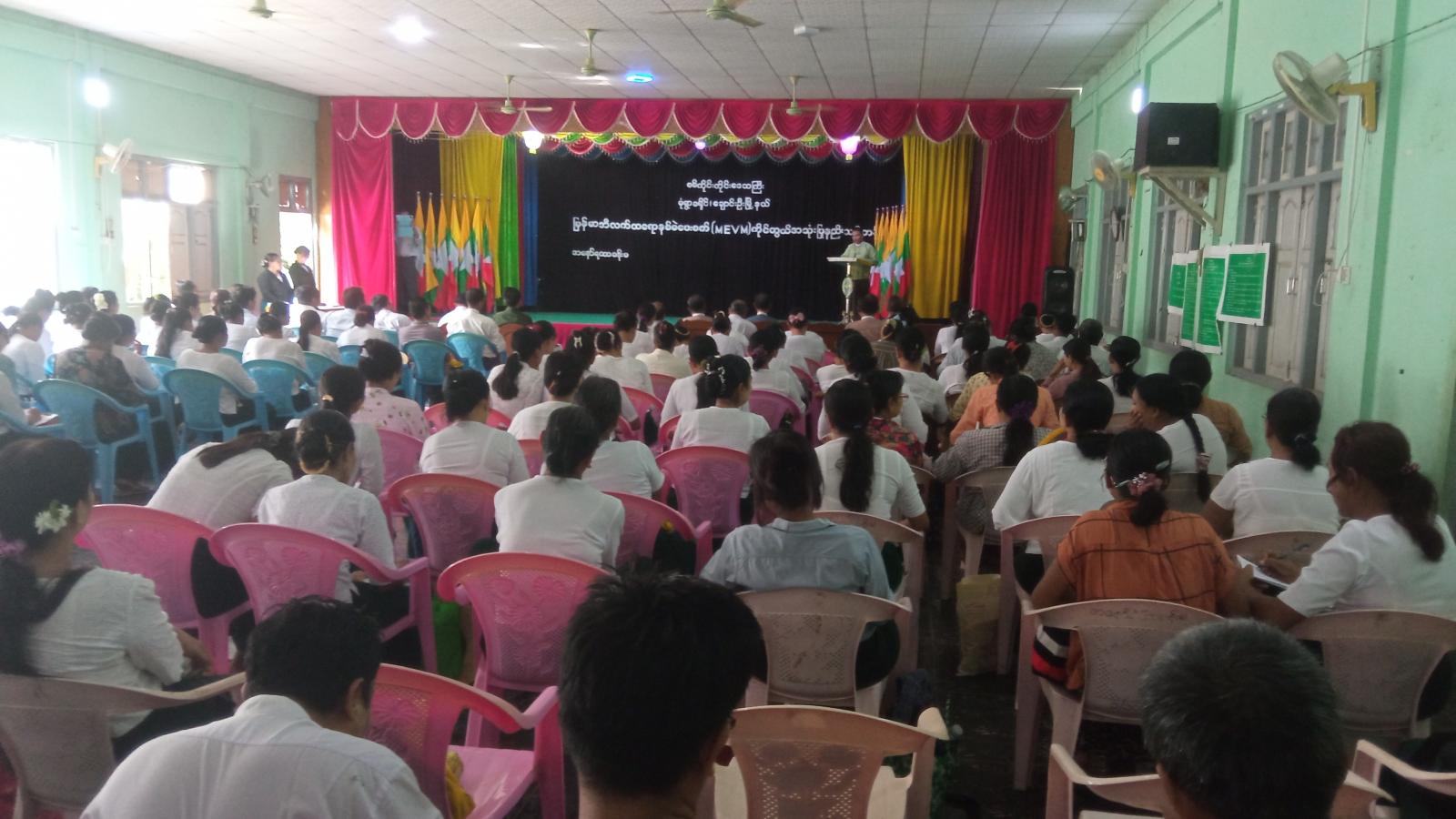 စစ်ကိုင်းတိုင်းဒေသကြီး၊ ချောင်းဦးမြို့ အနော်ရထာခန်းမ၌ ယနေ့နံနက် ၉ နာရီအချိန်က မြန်မာအီလက်ထရောနစ်မဲပေးစက် (MEVM) ကိုင်တွယ်အသုံးပြုနည်း သင်တန်းဖွင့်ပွဲ အခမ်းအနားကို ကျင်းပပြုလုပ်ခဲ့ကြောင်း သိရသည်။