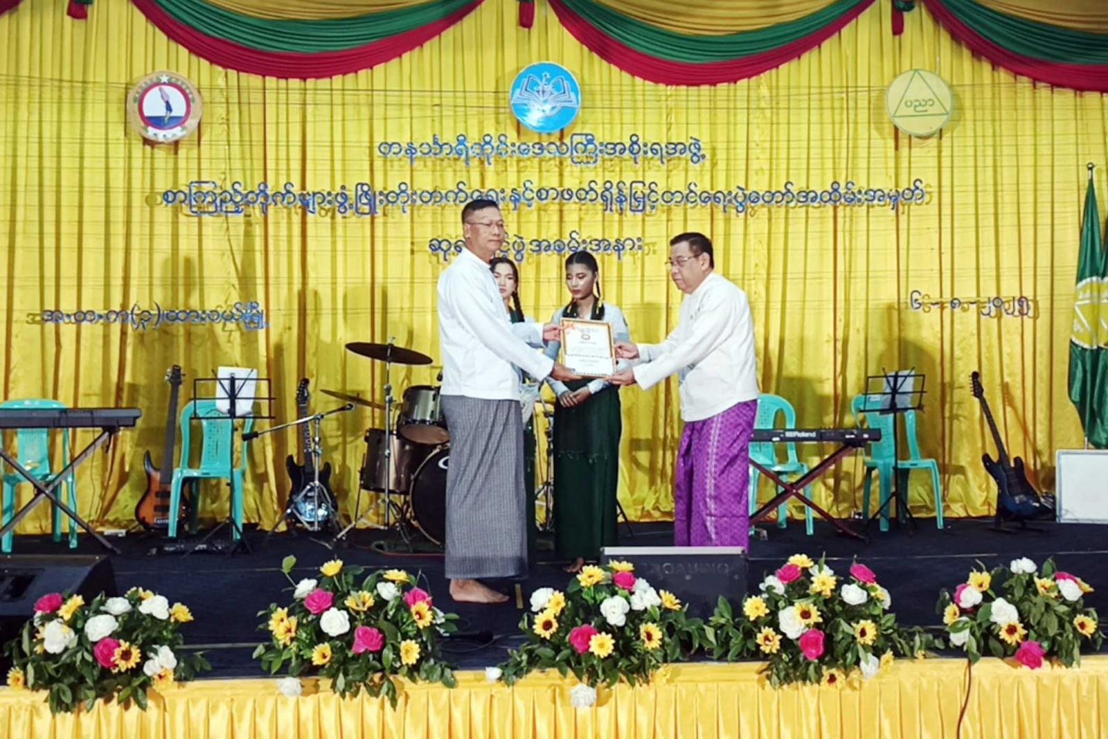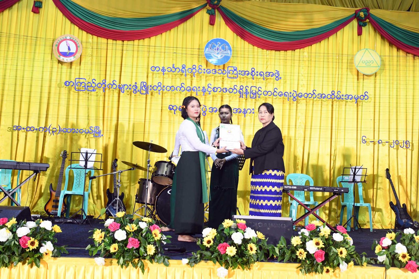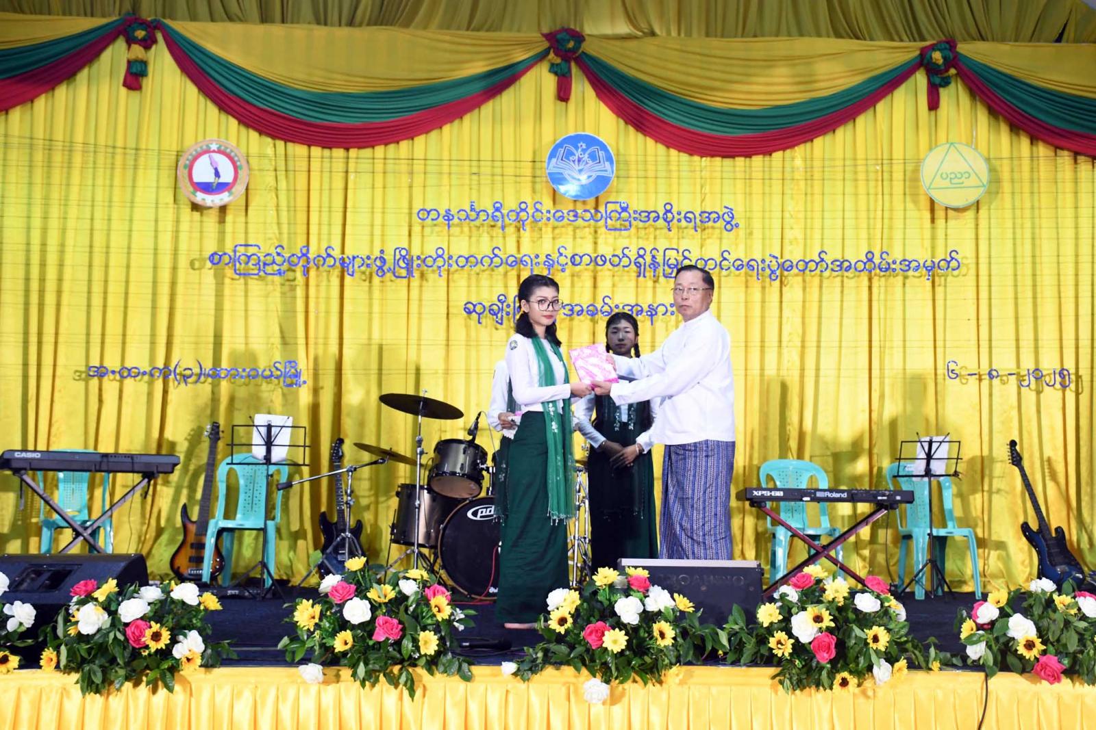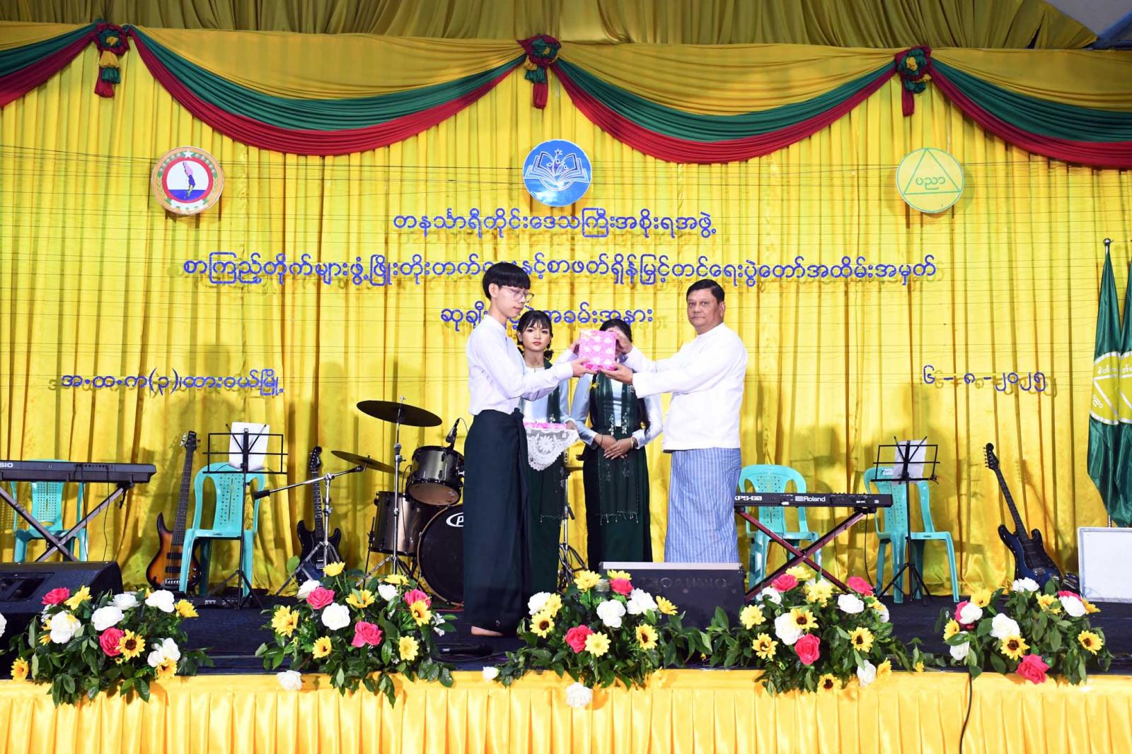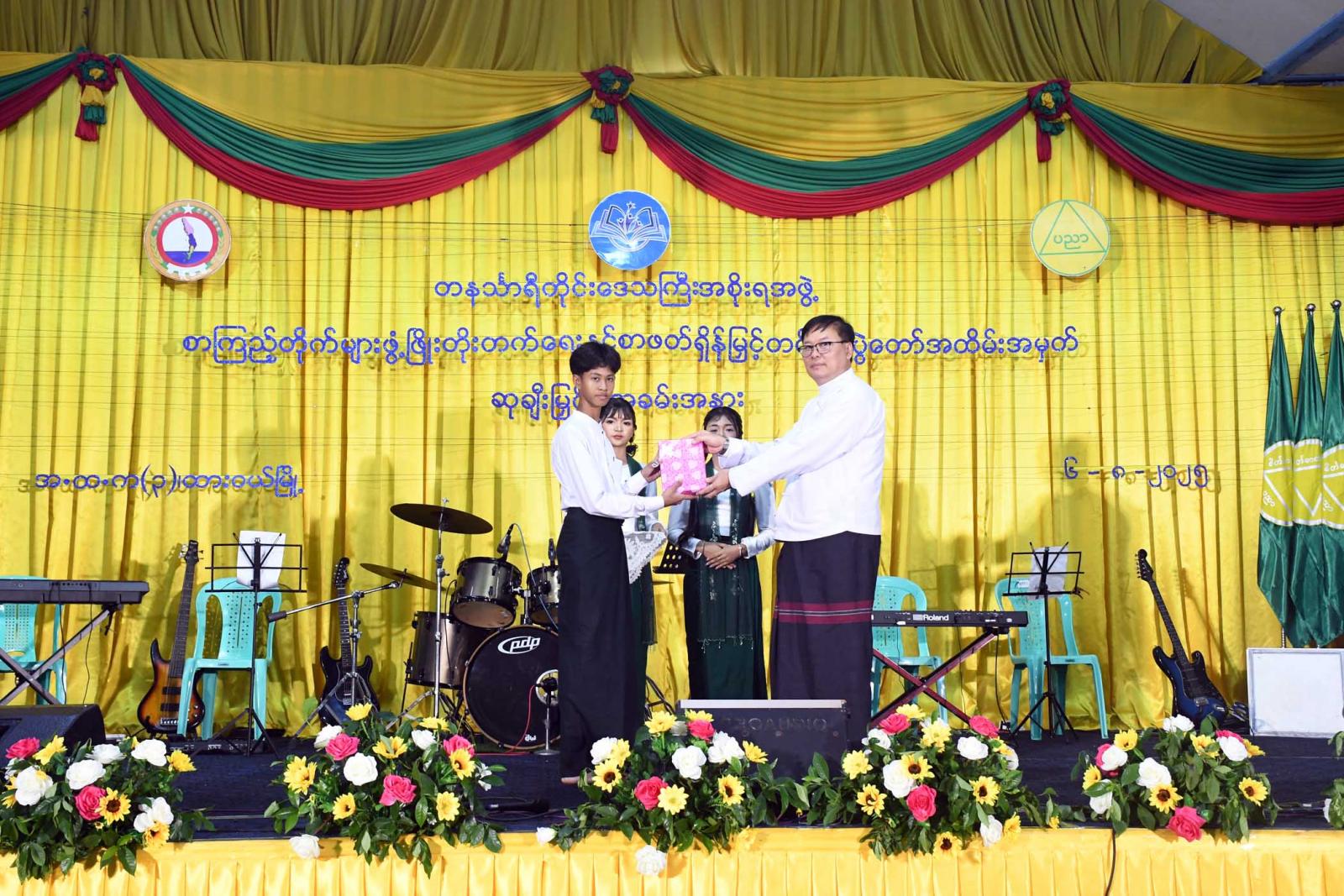 ယင်းနောက်တိုင်းဒေသကြီးလူမှုရေးရာဝန်ကြီးဦးသက်နိုင်၊တိုင်းဒေသကြီးလမ်းပန်းဆက်သွယ်ရေးဝန်ကြီးဦးအောင်ဇော်လှိုင်၊တိုင်းဒေသကြီး တိုင်းရင်းသားရေးရာဝန်ကြီးများနှင့် တာဝန်ရှိသူများက ပြိုင်ပွဲဝင်ကျောင်းသား/ကျောင်းသူများအား ဂုဏ်ပြုလက်ဆောင်များ ပေးအပ်ကြသည်။
