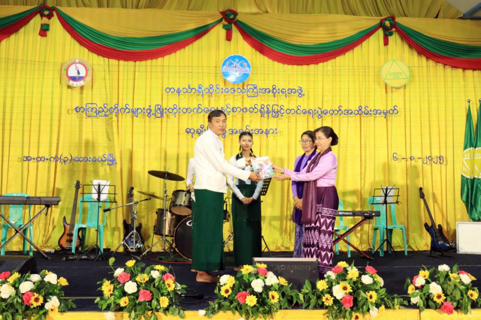 တနင်္သာရီတိုင်းဒေသကြီးအစိုးရအဖွဲ့၏စီမံမှုဖြင့် ပြန်ကြားရေးနှင့်ပြည်သူ့ဆက်ဆံရေးဦးစီးဌာနနှင့် အခြေခံပညာဦးစီးဌာနတို့ ပူးပေါင်း၍ စာကြည့်တိုက်များဖွံ့ဖြိုးတိုးတက်ရေးနှင့် စာဖတ်ရှိန်မြှင့်တင်ရေး ပွဲတော်ဆုချီးမြှင့်ပွဲအခမ်းအနားကို ယနေ့ နံနက် ၉ နာရီခွဲ က ထားဝယ်မြို့၊ အမှတ်(၃)အခြေခံပညာ အထက်တန်းကျောင်း ပညာ့ဗိမာန်ခန်းမ၌ကျင်းပသည်။