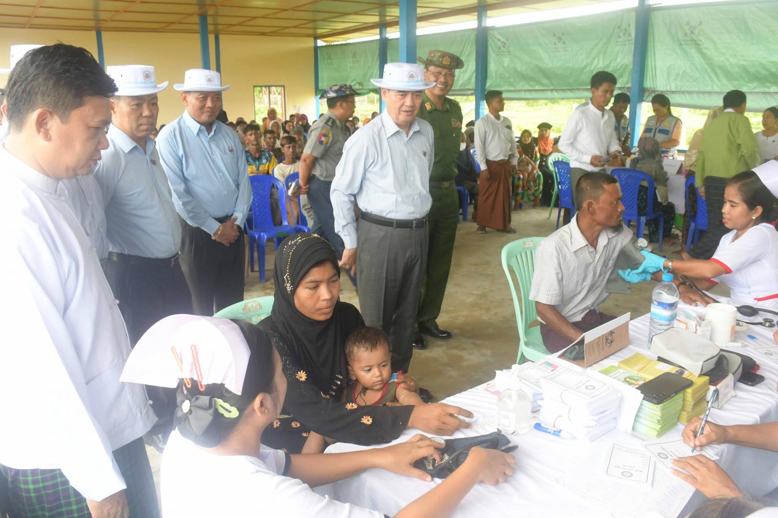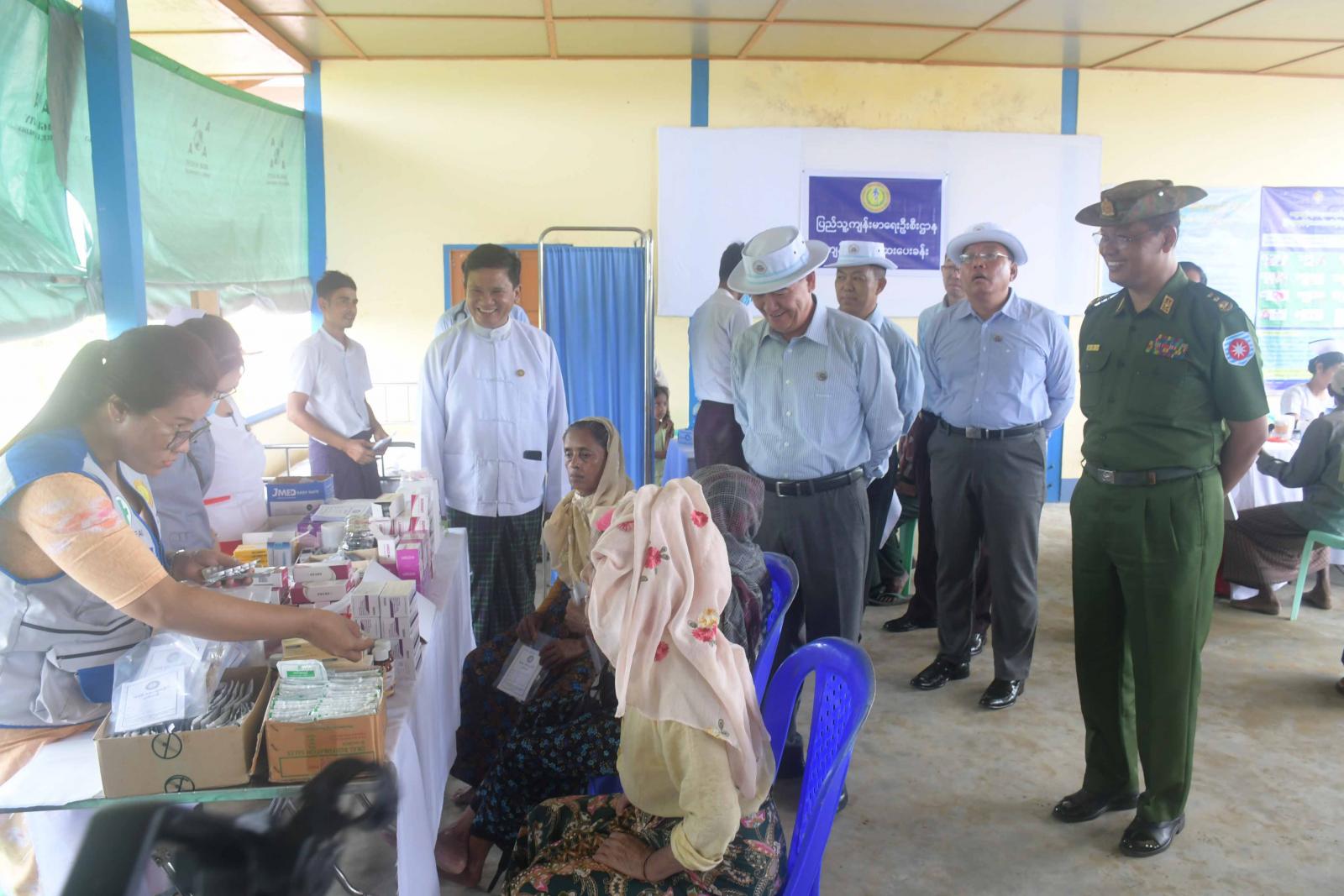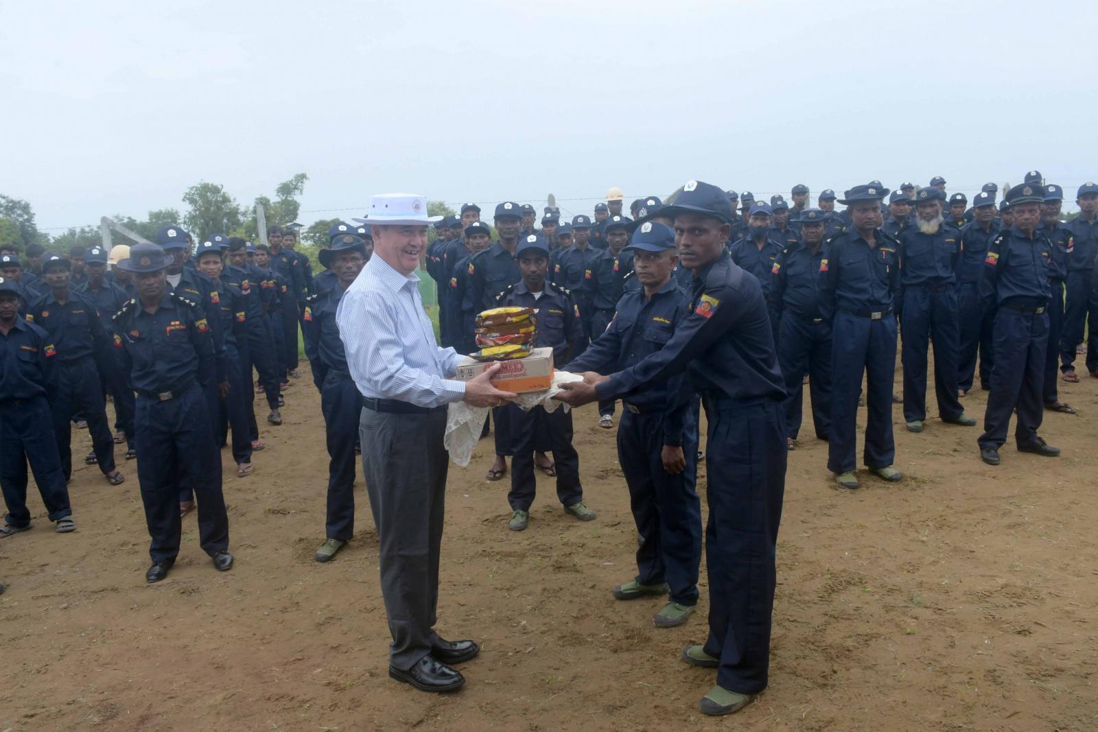 ထို့နောက် ပြည်နယ်ဝန်ကြီးချုပ်နှင့်အဖွဲ့သည် ကင်းစခန်းများတွင် တာဝန်ထမ်းဆောင် နေကြသည့် တပ်ဖွဲ့ဝင်များအား တွေ့ဆုံအားပေးစကားပြောကြားပြီး တပ်ဖွဲ့ဝင် များအတွက် စားသောက်ဖွယ်ရာ များကို ချီးမြှင့် ပေးအပ်ခဲ့သည်။