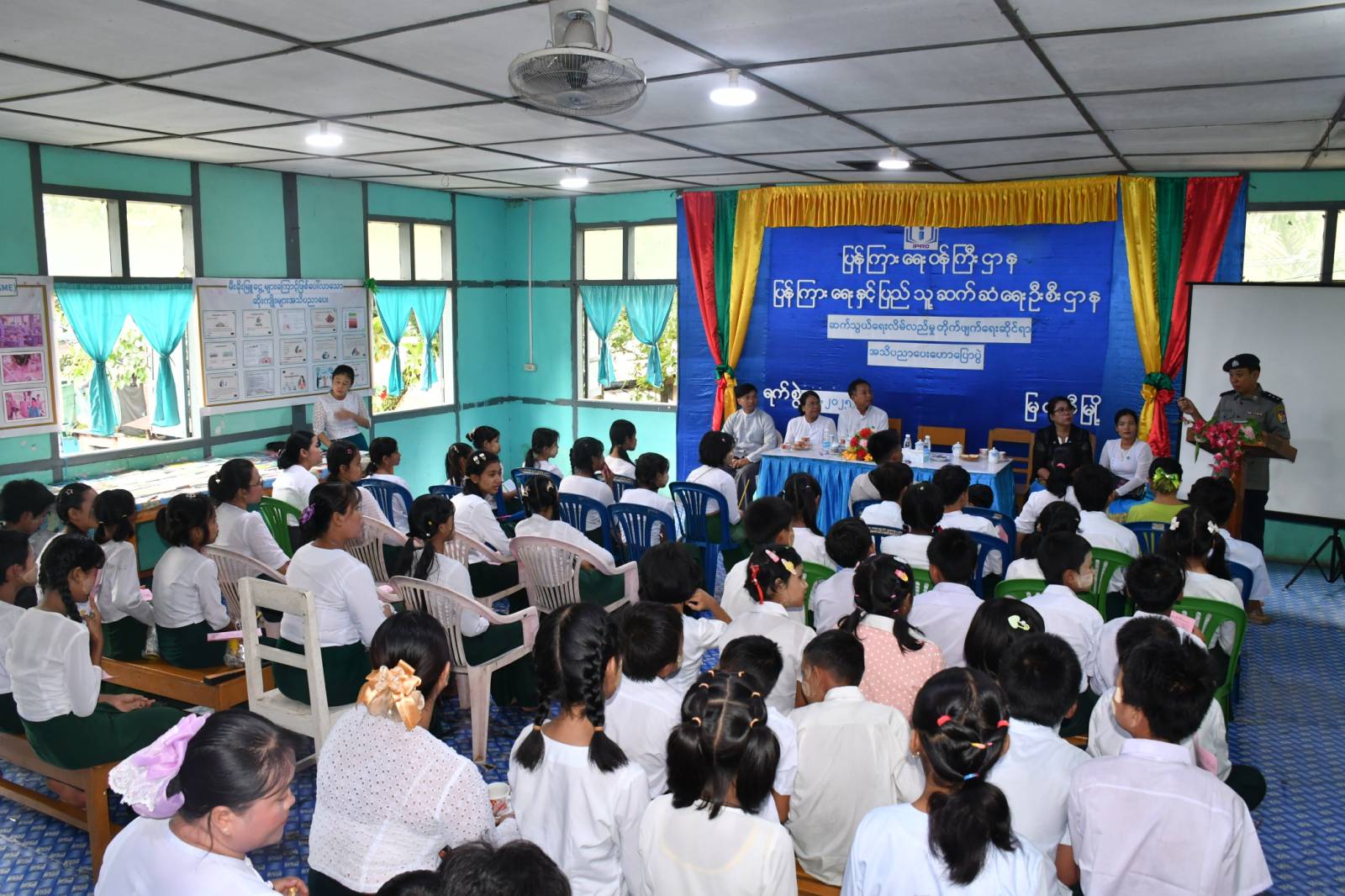 ထို့နောက် မဲခေါင်တရား ဉပဒေစိုးမိုးရေးနှင့် လုံခြုံရေးပူးပေါင်းဆောင်ရွက်မှုဗဟိုဌာနမှပေးပို့လာသည့် ဆက်သွယ်ရေး လိမ်လည်မှုတိုက်ဖျက်ရေးဆိုင်ရာ အသိ ပညာပေးဗီဒီယို Clip (၂)ခုကို ပြသခဲ့ကာ အသိပညာပေးဟောပြောခဲ့သည့်အကြောင်းအရာများကို ဉာဏ်စမ်းမေးခွန်းများ မေးမြန်းခြင်းနှင့် ကျောင်းသား၊ ကျောင်းသူများမှ သိရှိလိုသည့် အကြောင်းအရာများ မေးမြန်းခြင်းအစီအစဥ်များကို ဆောင်ရွက်ခဲ့ရာသက်ဆိုင်ရာတာဝန်ရှိသူများက ပြန်လည်ရှင်းလင်းဖြေကြား ပေးခဲ့သည်။