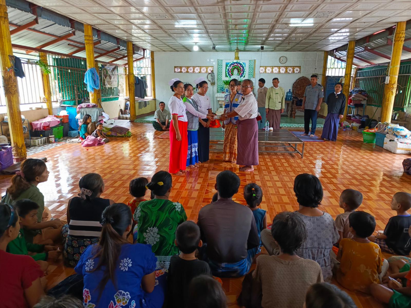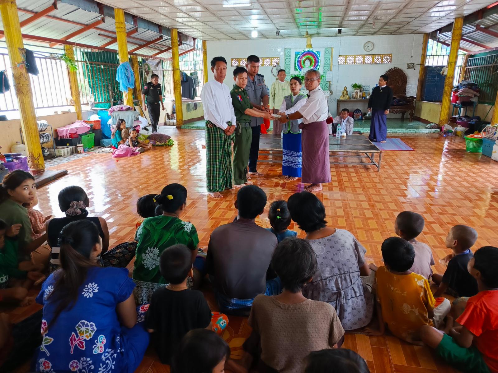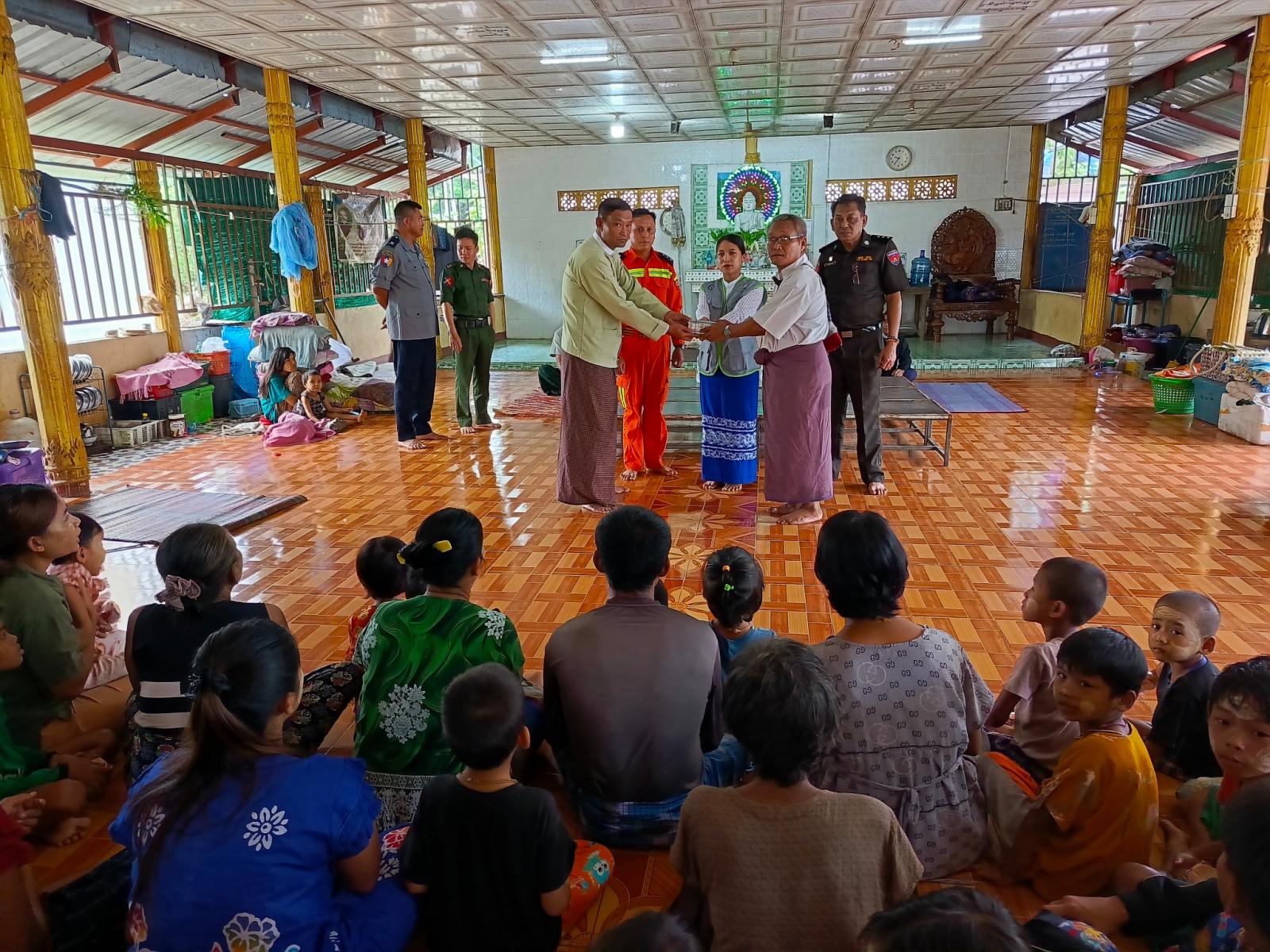 မွန်ပြည်နယ်၊ သထုံမြို့နယ်တွင် မိုးအဆက်မပြတ်ရွာသွန်းပြီး ဒုံသမိချောင်းရေ မြင့်တက်လာမှုကြောင့် ရေဘေးလွတ်ရာ ရှောင်တိမ်းနေထိုင်ကြသည့် ဒူးရင်းဆိပ်ကျေးရွာအနိမ့်ပိုင်းမှ ရေဘေးရှောင်ပြည်သူများအား ဘေးအန္တရာယ်ဆိုင်ရာ စီမံခန့်ခွဲမှုဦးစီးဌာန၏ (၇) ရက်စာ ဆန်ရိက္ခာဖိုးငွေများ ထောက်ပံ့ပေးအပ်ခြင်း အခမ်းအနားကို ယမန်နေ့ နံနက်ပိုင်းက အဆိုပါကျေးရွာ၊ ရွာလယ်ဓမ္မာရုံ၌ ပြုလုပ်သည်။