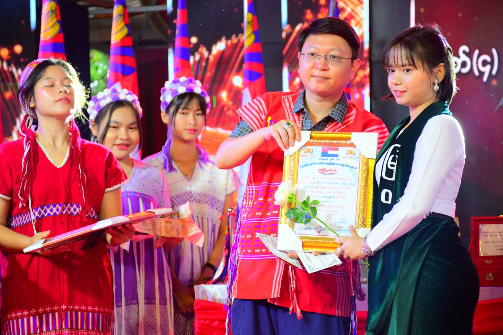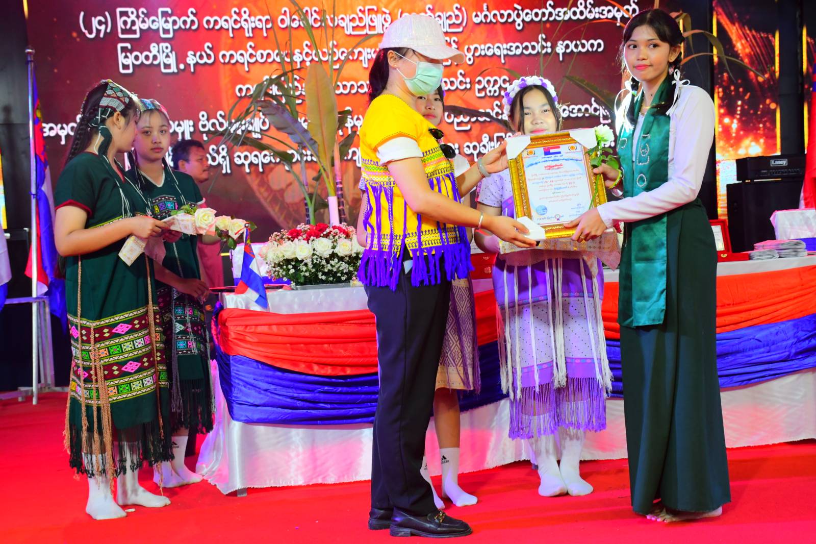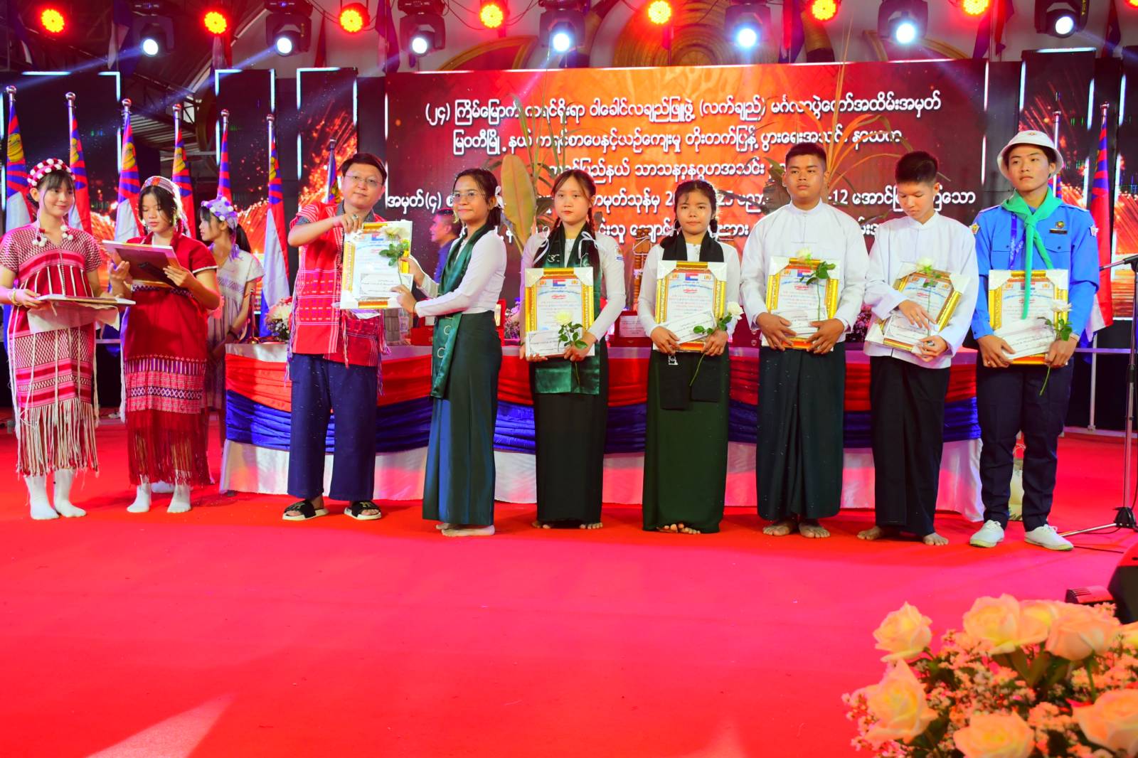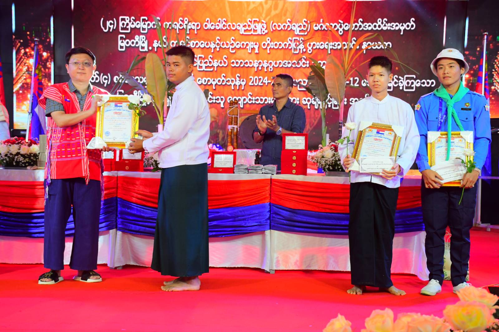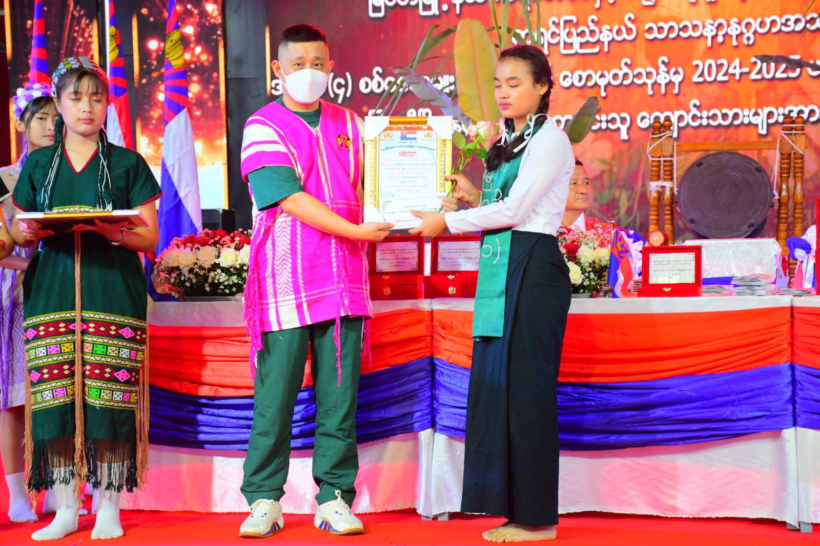 ဆက်လက်ပြီး ၂၀၂၄-၂၀၂၅ ပညာသင်နှစ် တက္ကသိုလ်ဝင်စာမေးပွဲတွင် အောင်မြင်ခဲ့ကြသည့် ကျောင်းသား၊ ကျောင်းသူများ၊ ဂုဏ်ထူးရကျောင်းသား၊ ကျောင်းသူများနှင့်ပြည်နယ်အဆင့် လူရည်ချွန်ဆုရ ကျောင်းသားများအား တာဝန်ရှိသူများက ဂုဏ်ပြုဆုများချီးမြှင့်ခဲ့ကာ ၂၀၂၄-၂၀၂၅ ပညာသင်နှစ် (၃) ဘာဂုဏ်ထူးရှင် ကျောင်းသူ မလဲ့ရည်အောင်က ကျေးဇူးတင်စကားပြောကြားခဲ့ပြီး ဂုဏ်ပြုချီးမြှင့်ပွဲ အခမ်းအနားအား ရုပ်သိမ်းခဲ့ကြောင်း သိရသည်။