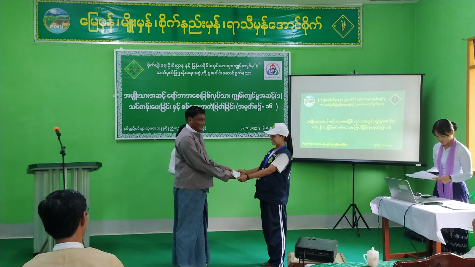 ဆက်လက်၍ သင်တန်းတွင်ဆုရရှိသော သင်တန်းသား/သူများကို တာဝန်ရှိသူများက ဆုချီးမြှင့်ပေးအပ်ခဲ့ပြီး သင်တန်းကို သင်တန်းသား/သူ(၃၀)ဦး တက်ရောက်ခဲ့ကြောင်း သိရသည်။