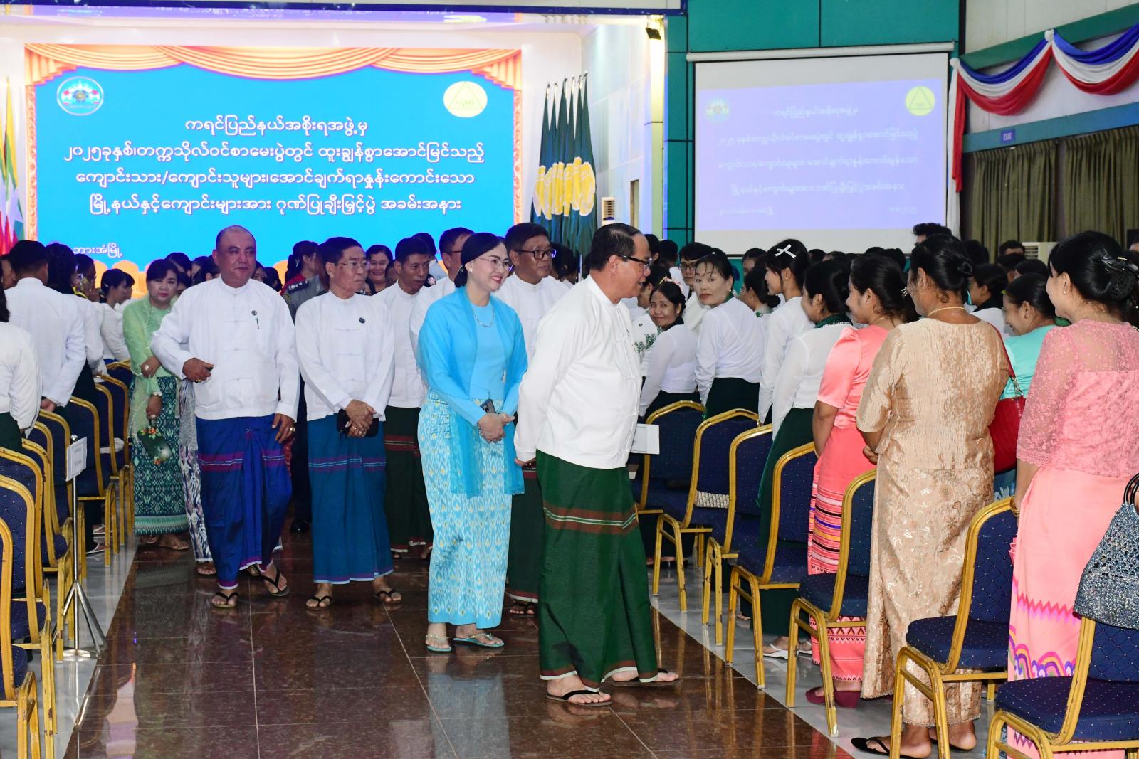 ထို့နောက် ဆုရကျောင်းသား၊ ကျောင်းသူများကိုယ်စား ဆုရကျောင်းသားတစ်ဦးက ကျေးဇူးတင်စကား ပြန်လည်ပြောကြားပြီး အမှတ်(၃)အခြေခံပညာအထက် တန်းကျောင်းမှ ကျောင်းသား၊ ကျောင်းသူများက ဇာတိမာန်သီချင်းဖြင့် သီဆိုဖျော်ဖြေကာ ပြည်နယ်ဝန်ကြီးချုပ်၊ ပြည်နယ်တရားလွှတ်တော်တရားသူကြီးချုပ်၊ ပြည်နယ်အစိုးရအဖွဲ့ဝင်များက ဂုဏ်ပြုဆုရရှိကြသူများနှင့် စုပေါင်းမှတ်တမ်းဓာတ်ပုံများရိုက်ကူး၍ တက်ရောက်လာသော ကျောင်းသား၊ ကျောင်းသူများ၊ ကျောင်းသားမိဘများအား ရင်းနှီးနွေးထွေးစွာတွေ့ဆုံနှုတ်ဆက်၍ အားပေးစကားများ ပြောကြားခဲ့ကြောင်း သိရသည်။