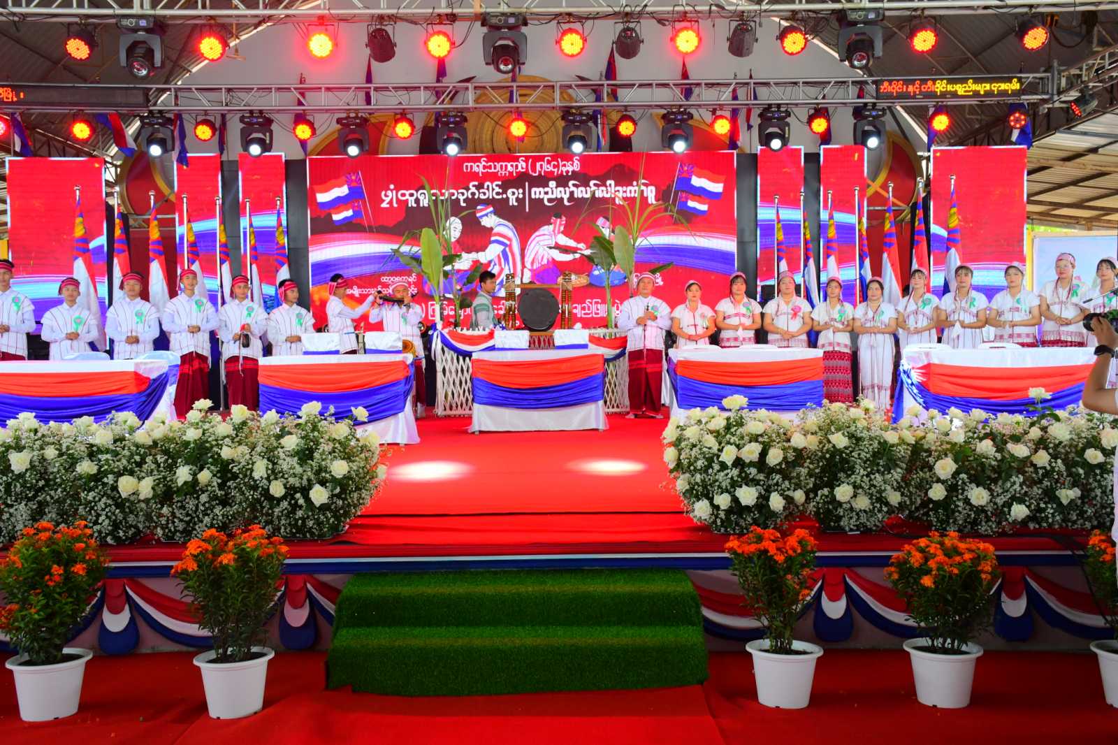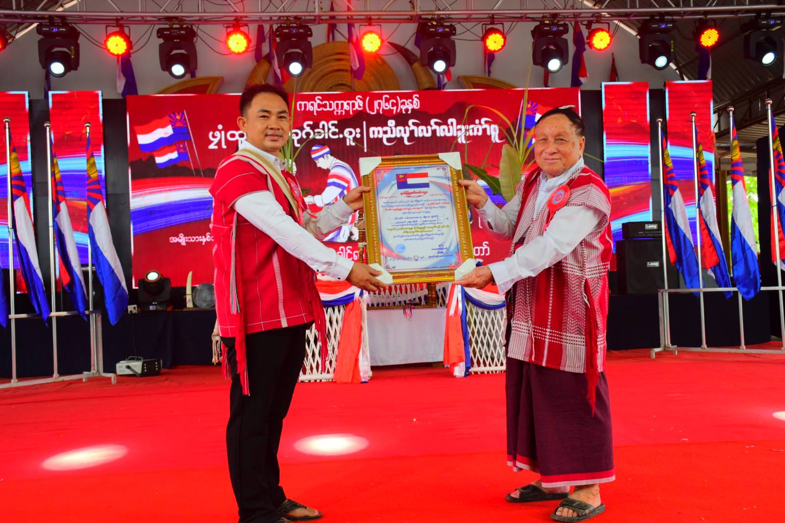 ကရင်ပြည်နယ်၊ မြဝတီခရိုင်၊မြဝတီမြို့ ကရင်နှစ်သစ်ကူးထာဝရငြိမ်းချမ်းရေးကွင်း၌ ယမန်နေ့ ညနေ ၃နာရီက (၂၄)ကြိမ်မြောက် ကရင်ရိုးရာ ဝါခေါင်လချည်ဖြူဖွဲ့မင်္ဂလာပွဲတော်ကိုဂုဏ်ပြုသောအားဖြင့် မြဝတီမြို့ရှိ ၂၀၂၄-၂၀၂၅ပညာသင်နှစ်တက္ကသိုလ်ဝင်စာမေးပွဲ အောင်မြင်ကြသည့်ကျောင်းသားကျောင်းသူများ၊ ဂုဏ်ထူးရကျောင်းသား၊ ကျောင်းသူများနှင့် ပြည်နယ်အဆင့် လူရည်ချွန်ဆုရ ကျောင်းသားများ၊ သင်ကြားပြသပေးသော ဆရာ၊ ဆရာမများ၊ ကရင်ရိုးရာ ချည်ဖြူဖွဲ့ (လက်ချည်) မင်္ဂလာ အထိမ်းအမှတ်အထက်တန်း အဆင့်၊ အလယ် တန်းဆင့်စာစီစာကုံးနှင့် ကဗျာပြိုင်ပွဲဆုရ ကျောင်းသူ၊ ကျောင်းသားများအား ဂုဏ်ပြုချီးမြှင့်ပွဲ အခမ်းအနားကျင်းပသည်။