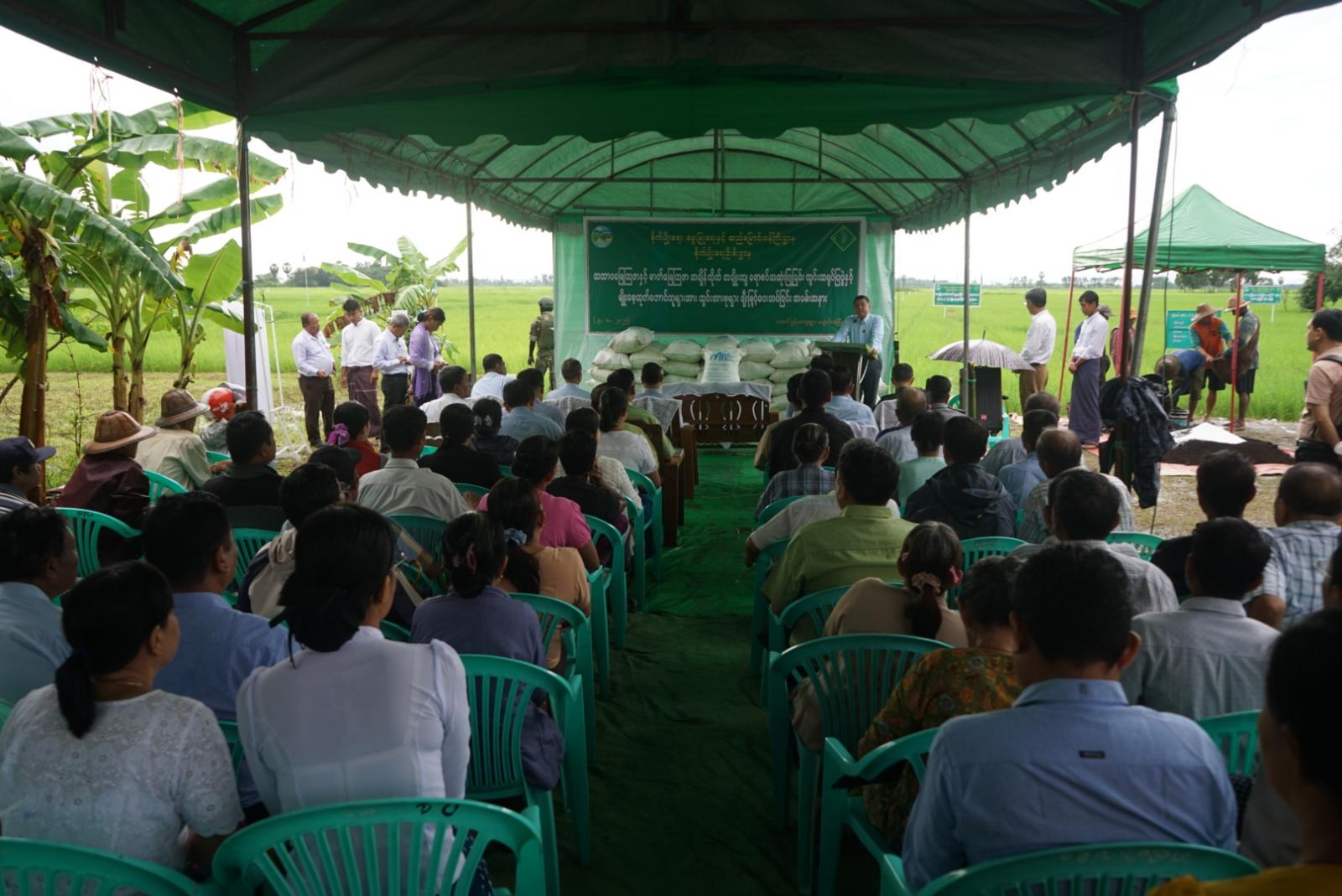 မွန်ပြည်နယ်၊ ချောင်းဆုံမြို့နယ်ရှိ မိုးစပါးစိုက်တောင်သူများ သဘာဝမြေဩဇာနှင့် ဓာတ်မြေဩဇာ အချိန်ကိုက်အချိုးကျ ရောစပ်အသုံးပြုနိုင်ရေးအတွက် ကွင်းသရုပ်ပြပွဲနှင့် မျိုးစေ့ထုတ်တောင်သူများအား သွင်းအားစုများပေးအပ်ခြင်းအခမ်းအနားကို ယနေ့နံနက် (၈)နာရီက တောင်စွန်ကျေးရွာ ကွင်းအမှတ် ၆၅၉(A)ရှိ တောင်သူဦးမောင်ဝင်း၏ မိုးစပါးစိုက်ကွက်၌ကျင်းပရာ မွန်ပြည်နယ်ဝန်ကြီးချုပ် ဦးအောင်ကြည်သိန်းနှင့် ပြည်နယ်အစိုးရအဖွဲ့ဝင်ဝန်ကြီးများ၊ ပြည်နယ်၊ ခရိုင်အဆင့်သက်ဆိုင်ရာဌာန တာဝန်ရှိသူများ တက်ရောက်ခဲ့ကြသည်။