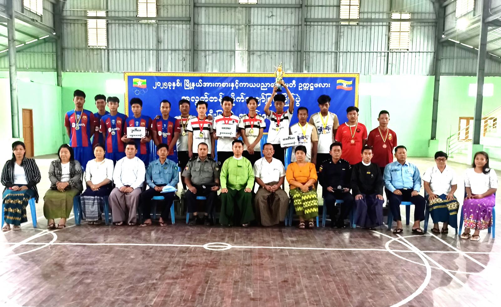 ထို့နောက် ဆုချီးမြှင့်ပွဲကျင်းပရာ ပထမဆုရရှိသော အ.ထ.ကသစ်ရာမြိုင်အသင်း၊ ဒုတိယရရှိသော လျှပ်စစ်အသင်း၊ တတိယရရှိသော မျိုးသိန်းအသင်းတို့အား တာဝန်ရှိသူများက ဆုများ ချီးမြှင့်ပေးအပ်ခဲ့ကြကြောင်း သိရသည်။