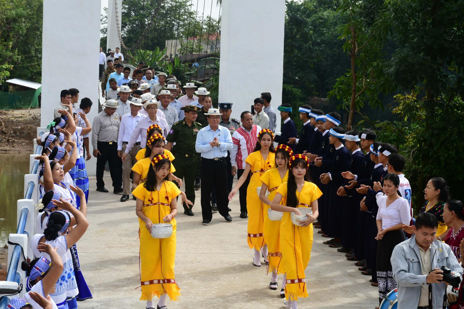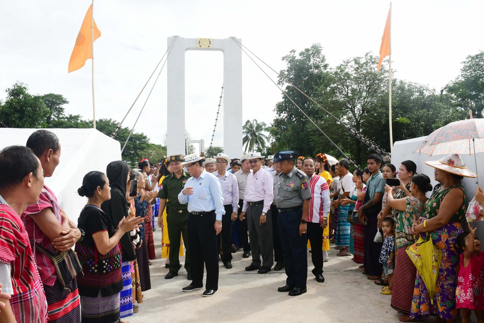 ထို့နောက် ပြည်နယ်လမ်းဦးစီးဌာန ညွှန်ကြားရေးမှူး(မြို့ပြ)ဦးတင်ဆောင်က တံတားဆိုင်ရာအချက်အလက်များကို ရှင်းလင်းပြောကြားပြီး ဒေသခံတစ်ဦးက ကျေးဇူးတင်စကားပြန်လည်ပြောကြားကာ ပြည်နယ်ဝန်ကြီးချုပ်နှင့် တာဝန်ရှိသူများက ကြိုးတံတားဖွင့်ပွဲသို့ တက်ရောက်လာသူများအား ရင်းနှီးနွေးထွေးစွာ တွေ့ဆုံနှုတ်ဆက်၍ အားပေးစကားများပြောကြားခဲ့ကြောင်း သိရသည်။